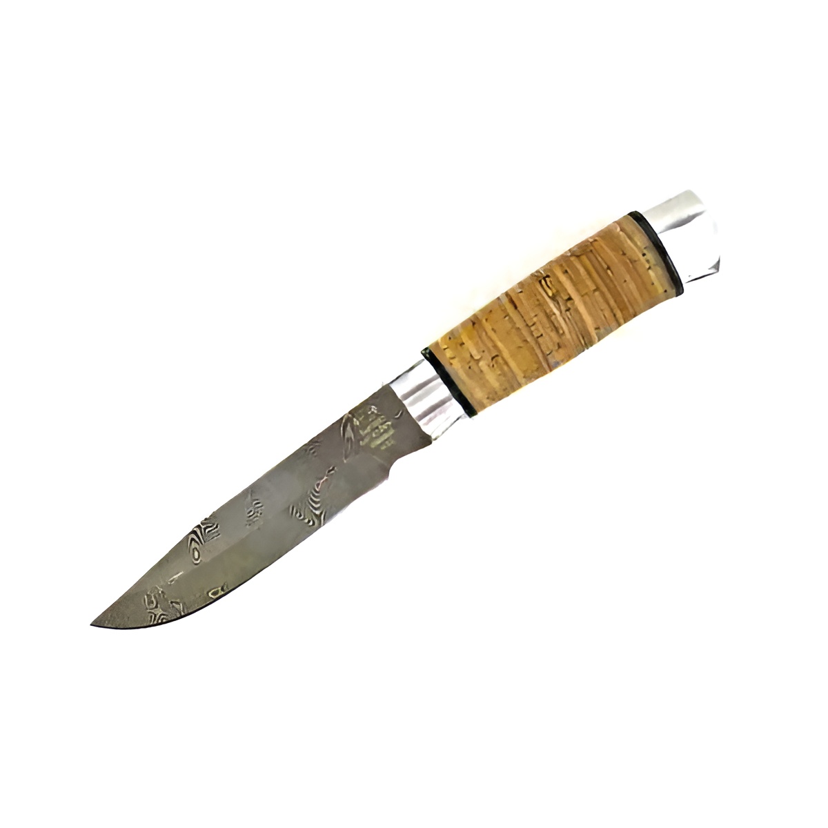 Нож Златоуст Н33, сталь 65Г-Х12МФ1 дюраль, береста, кожаные ножны