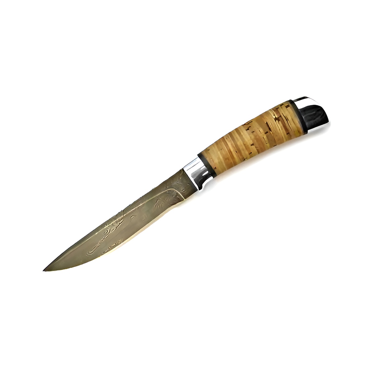 Нож Златоуст Н57, сталь У10А-7ХНМ дюраль, береста, кожаные ножны