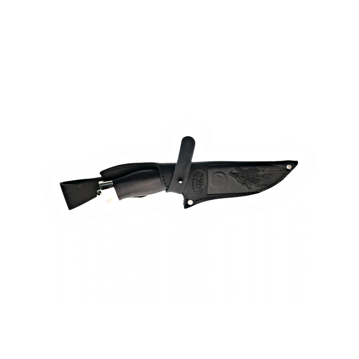 Кожаные ножны надежно фиксируют изделие и позволяют безопасно носить его на поясе или в снаряжении, защищая клинок и отделку