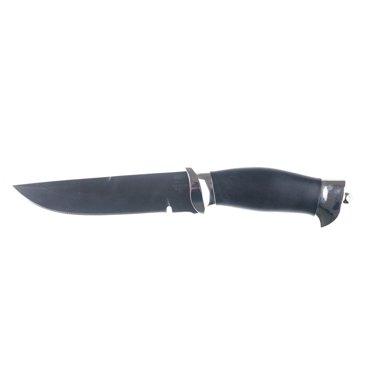 Фурнитура с никелевым покрытием подчёркивает златоустовскую школу отделки и защищает от потускнения. Рукоять из граба — плотная, устойчива к влаге после пропитки, надёжно лежит в руке в перчатке и без неё. Кожаные ножны формуют посадочное место, поэтому нож фиксируется мягко, но уверенно — удобно на поясе и в рюкзаке.