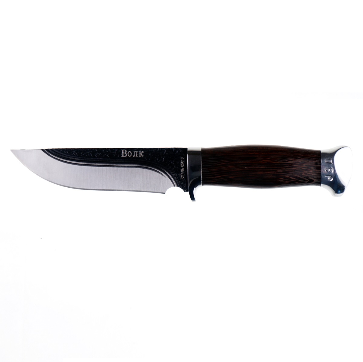 Нож Волк 13,5см с гравировкой, деревянная рукоять, в чехле