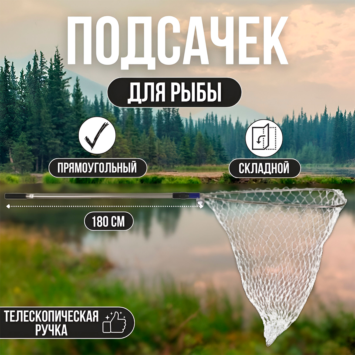 Подсачек Condor прямоугольный 50х60х180см (леска) телескопическая ручка, складной