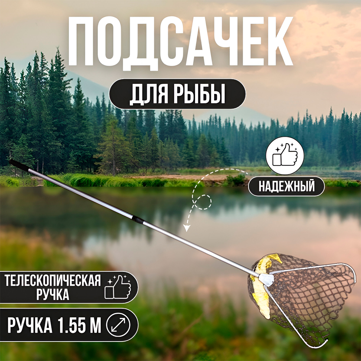 Подсачек Takedo треугольный 50х155см (плетенка) телескопическая алюминиевая ручка