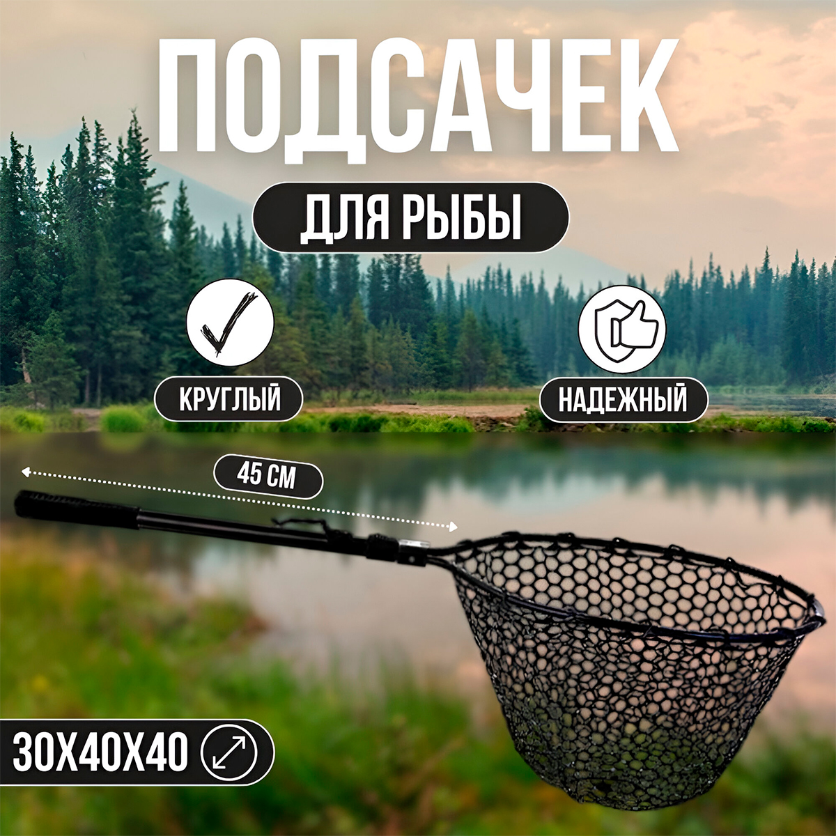 Подсачек Kyoda HB-007 круглый 30х40х40(45)см прорезиненный, ручка алюминиевая, складной