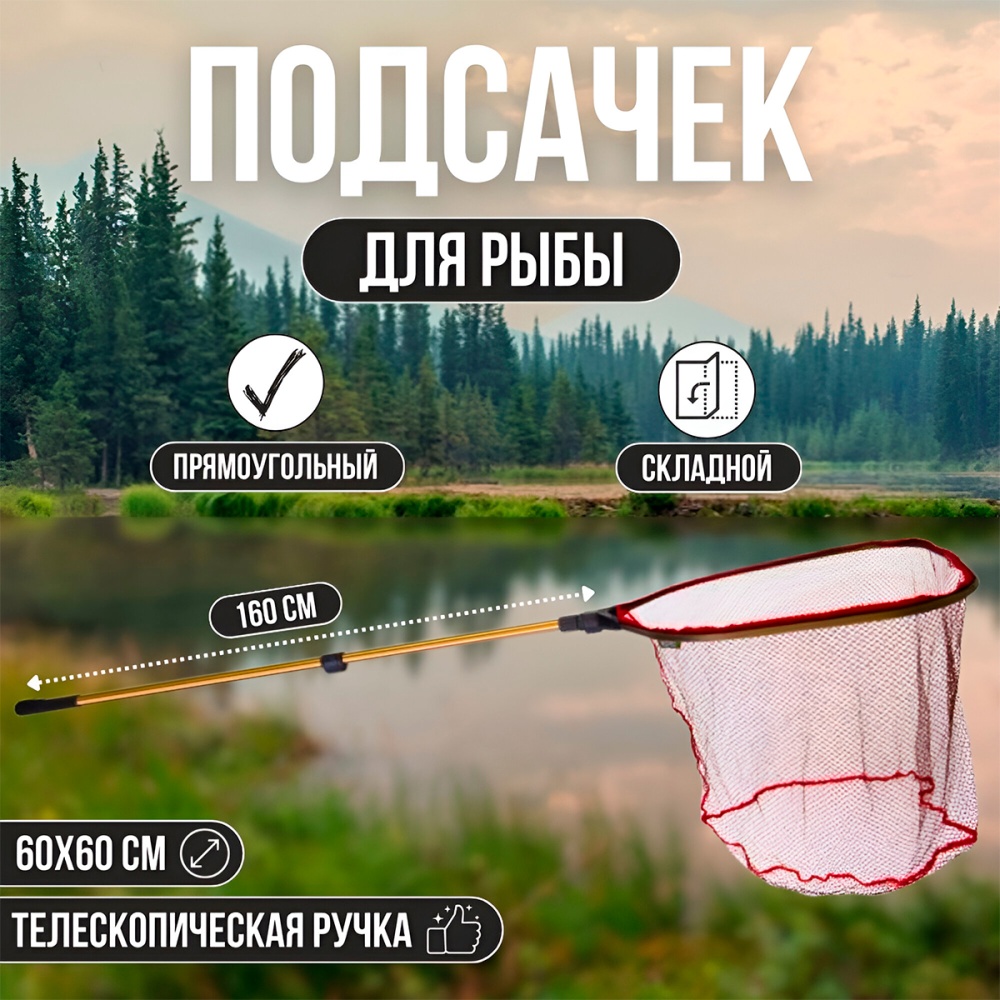 Подсачек Condor ZD-ET216060M, прямоугольный складной (60х60)х160см, телескопическая ручка