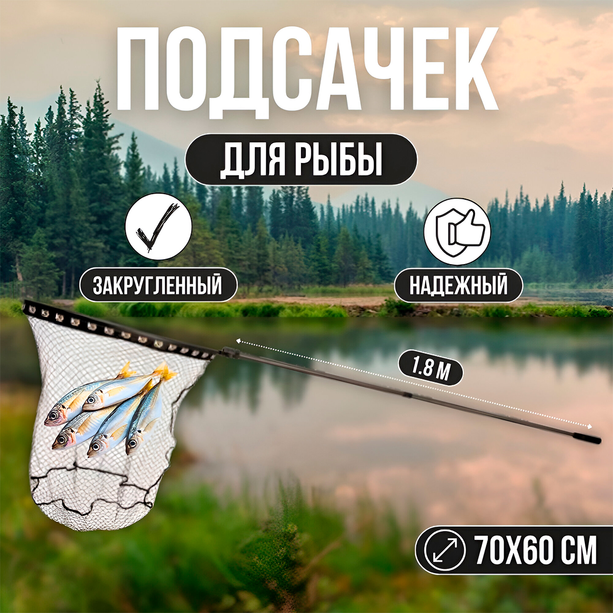 Подсачек Kyoda LNK-247060 круглый 70х60х180см прорезиненный, ручка карбоновая, складной