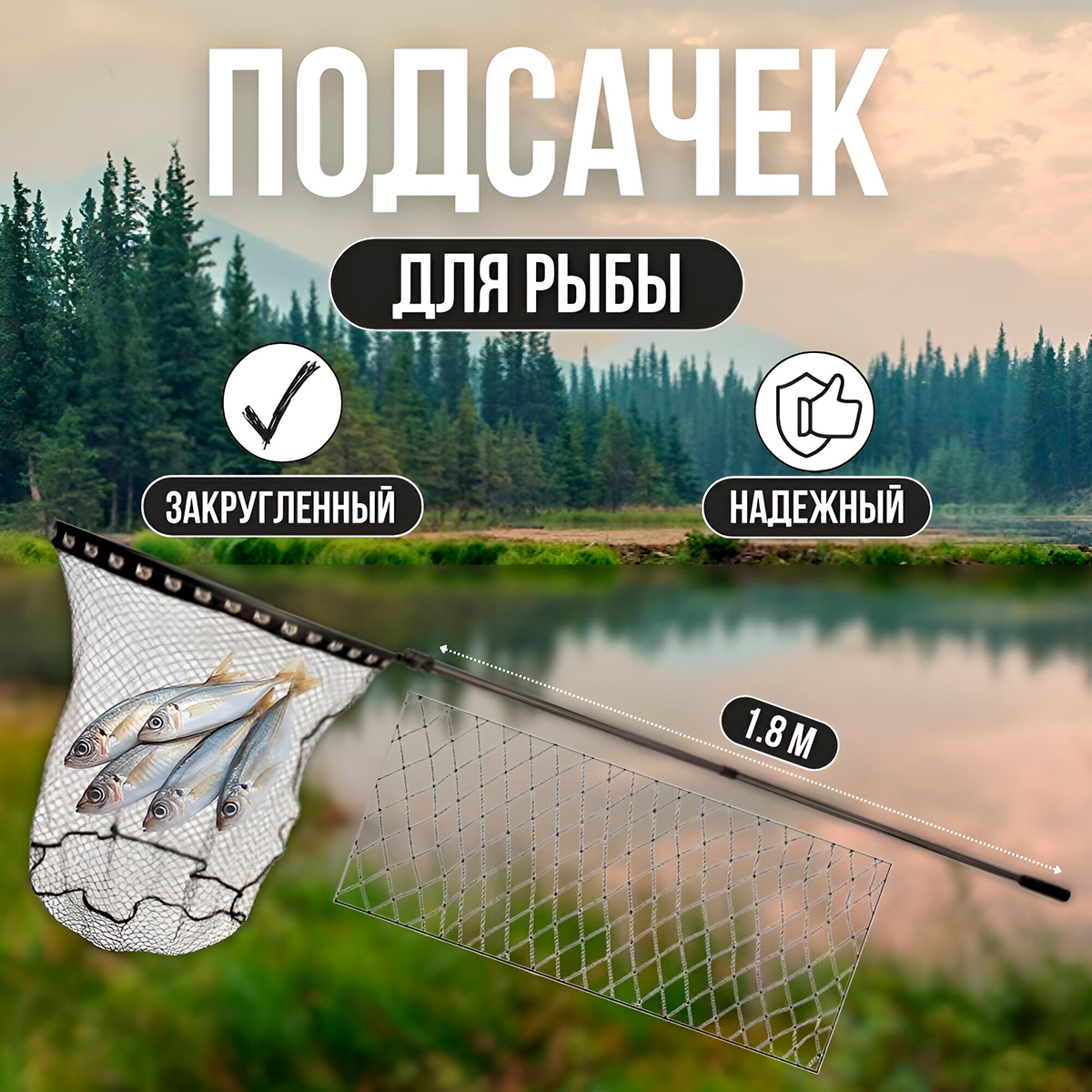 Подсачек Kyoda LNK-248070 круглый 80х70х180см прорезиненный, ручка карбоновая, складной