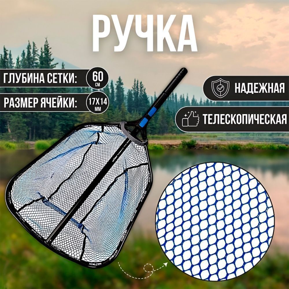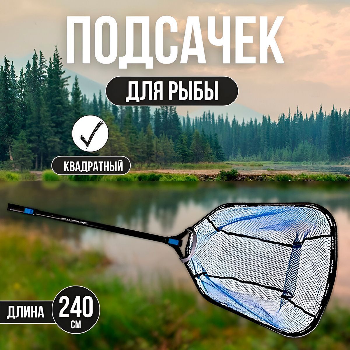 Подсачек SibBear Kookaburra L квадратный складной (плавающий) 70х60см, 240см, телескоп. ручка, черный