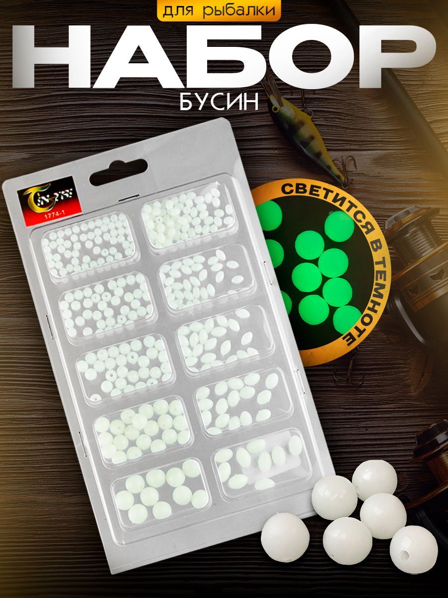 Набор бусин фотолюминесцентных (10 размеров) белые