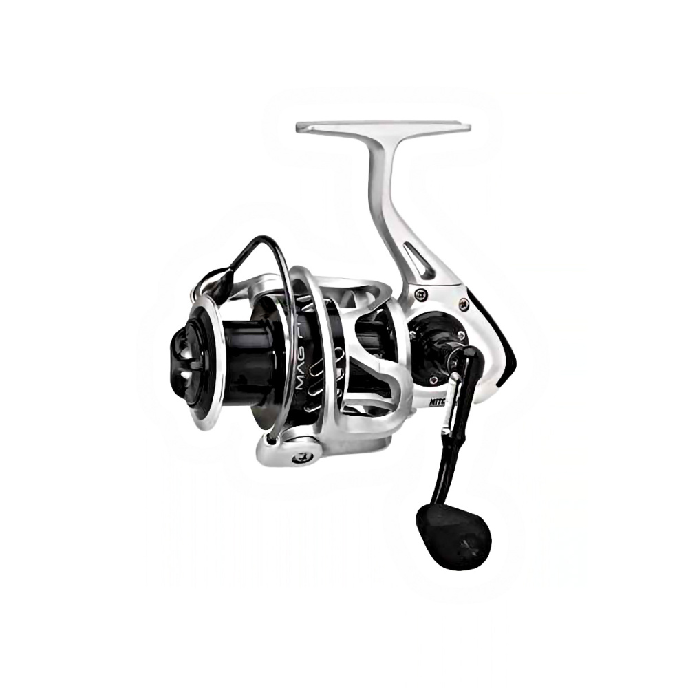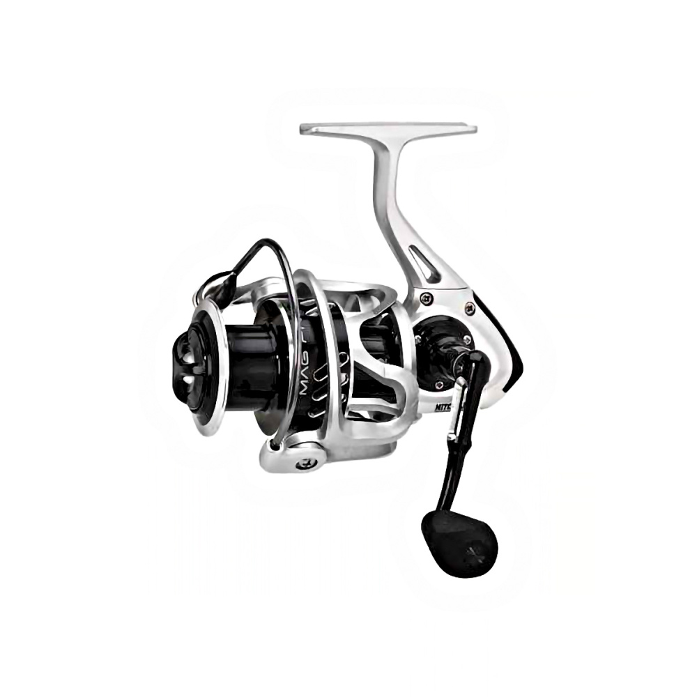Механическая часть катушки Mitchell Mag Pro R полностью из металла. Точная подгонка главной пары и 8 подшипников, смягчающих работу основных узлов, обеспечивают необходимую плавность и мягкость хода. Подшипники из нержавейки, семь из них шариковые, один роликовый. Предустановленная шпуля штампована из алюминия с анодированным защитным покрытием. Предусмотренный в комплекте резерв выполнен из металла с такой же защитным покрытием. Обе шпули перфорированы, что обеспечивает экономию веса, снабжены клипсой, которая позволяет надежно фиксировать нить. Пара сменных шайб дают возможность регулировать намотку в зависимости