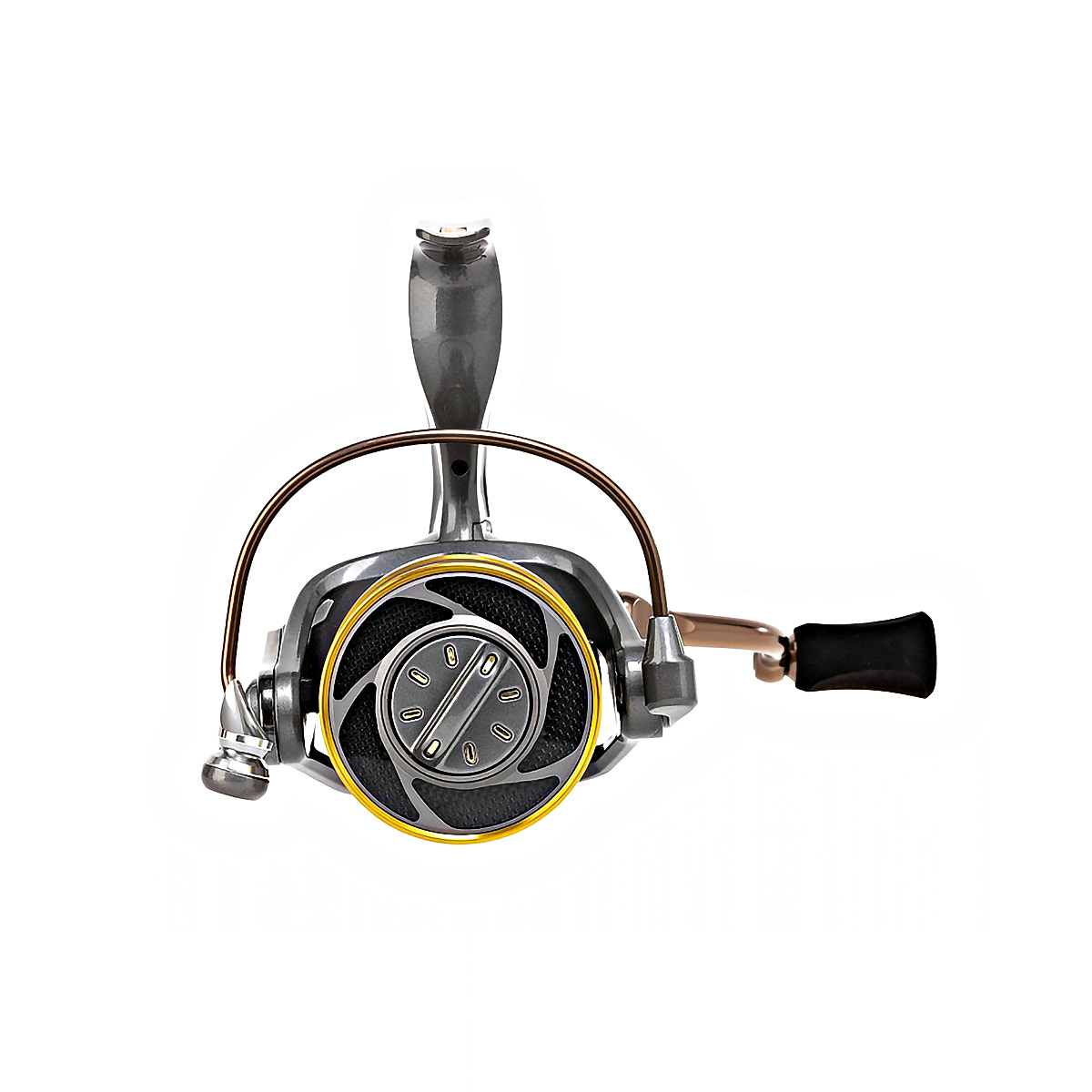 Обновленная шпуля обладает модернизированным бортиком, он приобрел скошенный удлиненный профиль и способствует легкому сходу лески. Уже привычная полая дужка лесоукладывателя венчается роликом, который оснащен также подшипником.