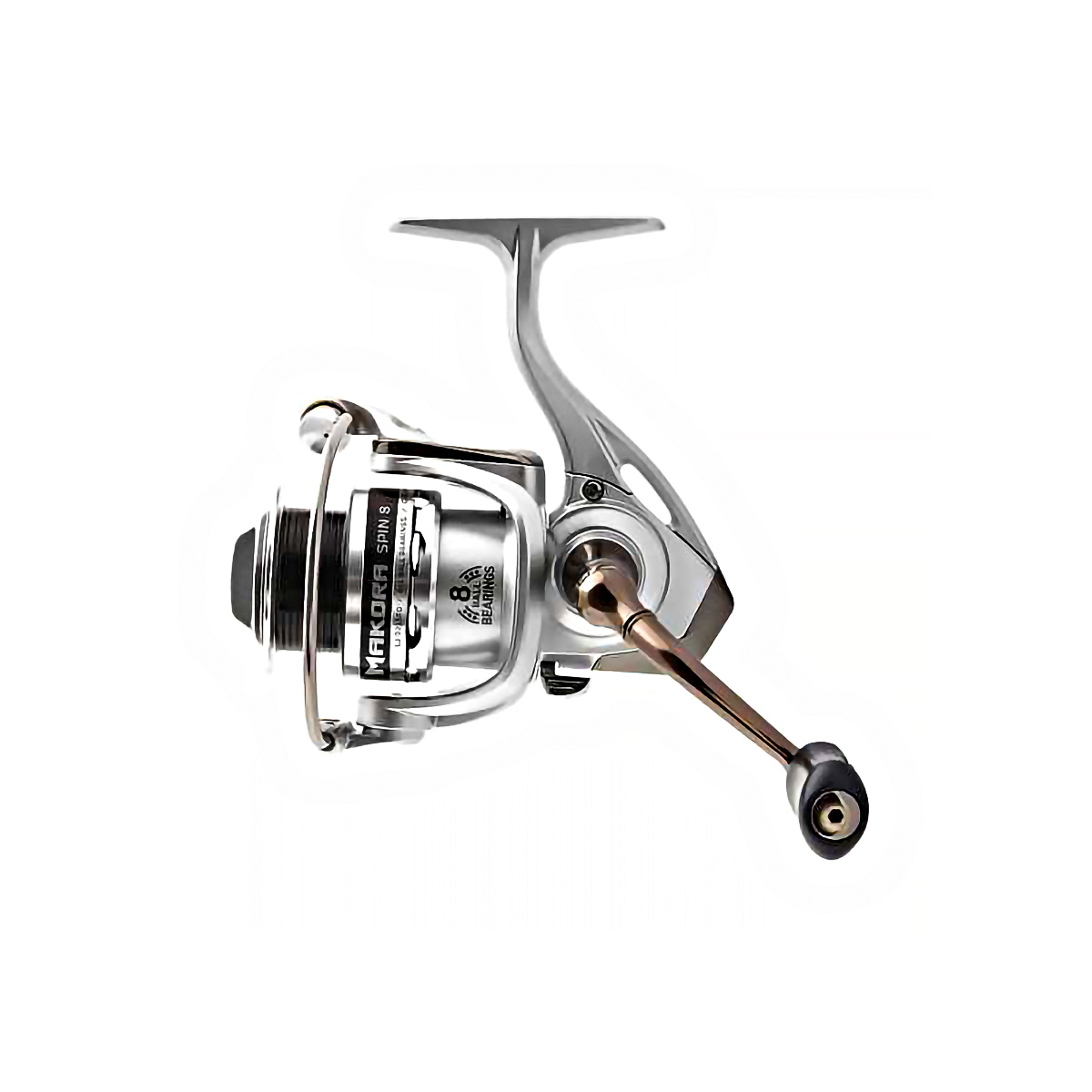 Основными характеристиками катушек Lucky John Makora Spin 8 FD являются: передний фрикционный тормоз FD, 7 шариковых и 1 роликовый подшипник, мгновенный стопор обратного хода (антиреверс) и его нижний флажковый включатель. Эти катушки отличаются высокоточным механизмом привода. Корпус и ротор у них карбопластовые, шпуля выполнена из алюминия, благодаря чему имеет малый вес. Еще одно достоинство этих катушек - прочная полая облегченная дужка лесоукладывателя.
