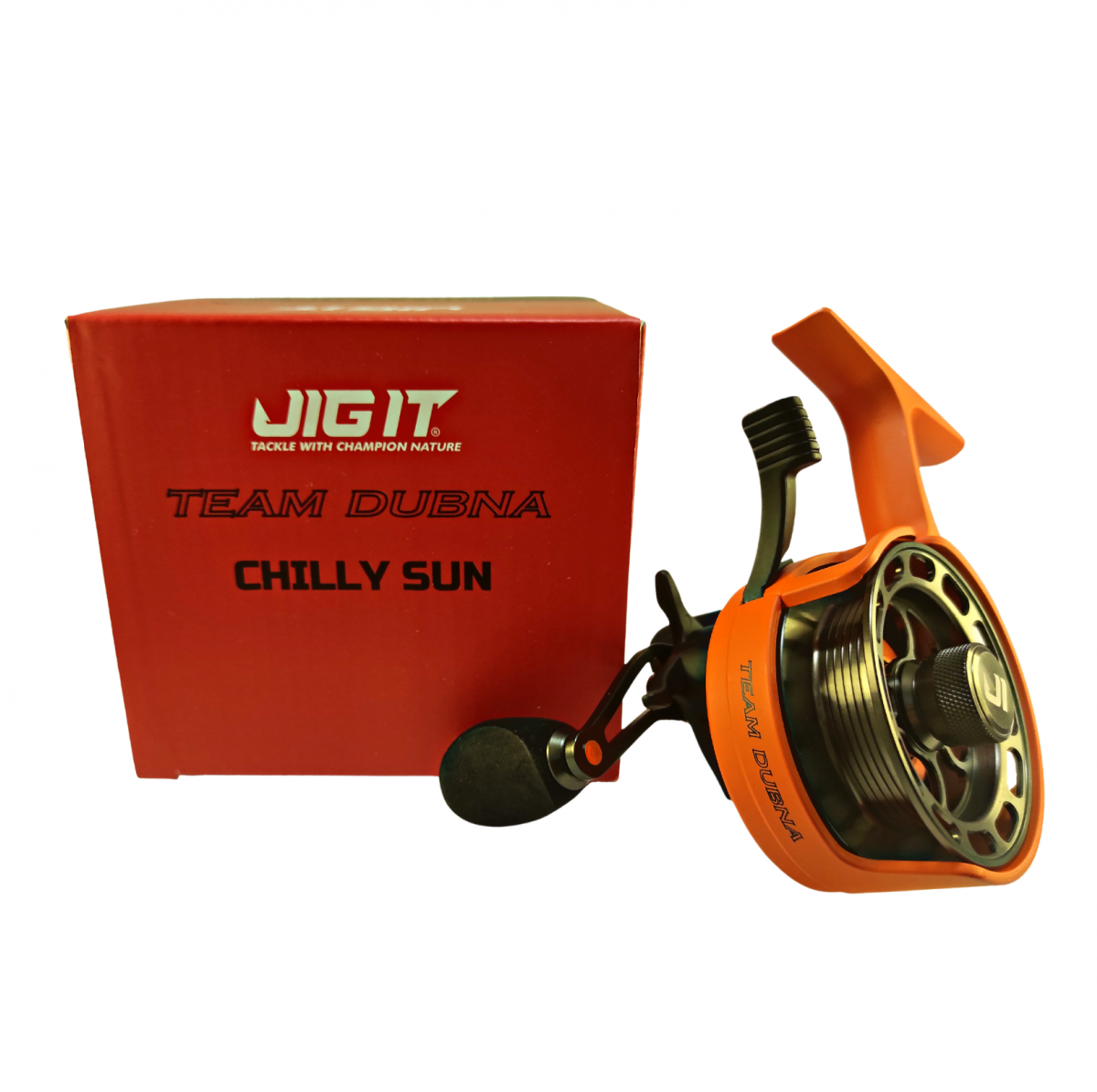 Зимние катушки JIG IT Team Dubna CHILLY SUN выполнены в запоминающемся дизайне, комплектуются точеной алюминиевой шпулей, предусмотрено направляющее «окошко» для лески, которое предотвращает сход со шпули при подмотке, и, самое главное, магнитная система подтормаживания шпули.