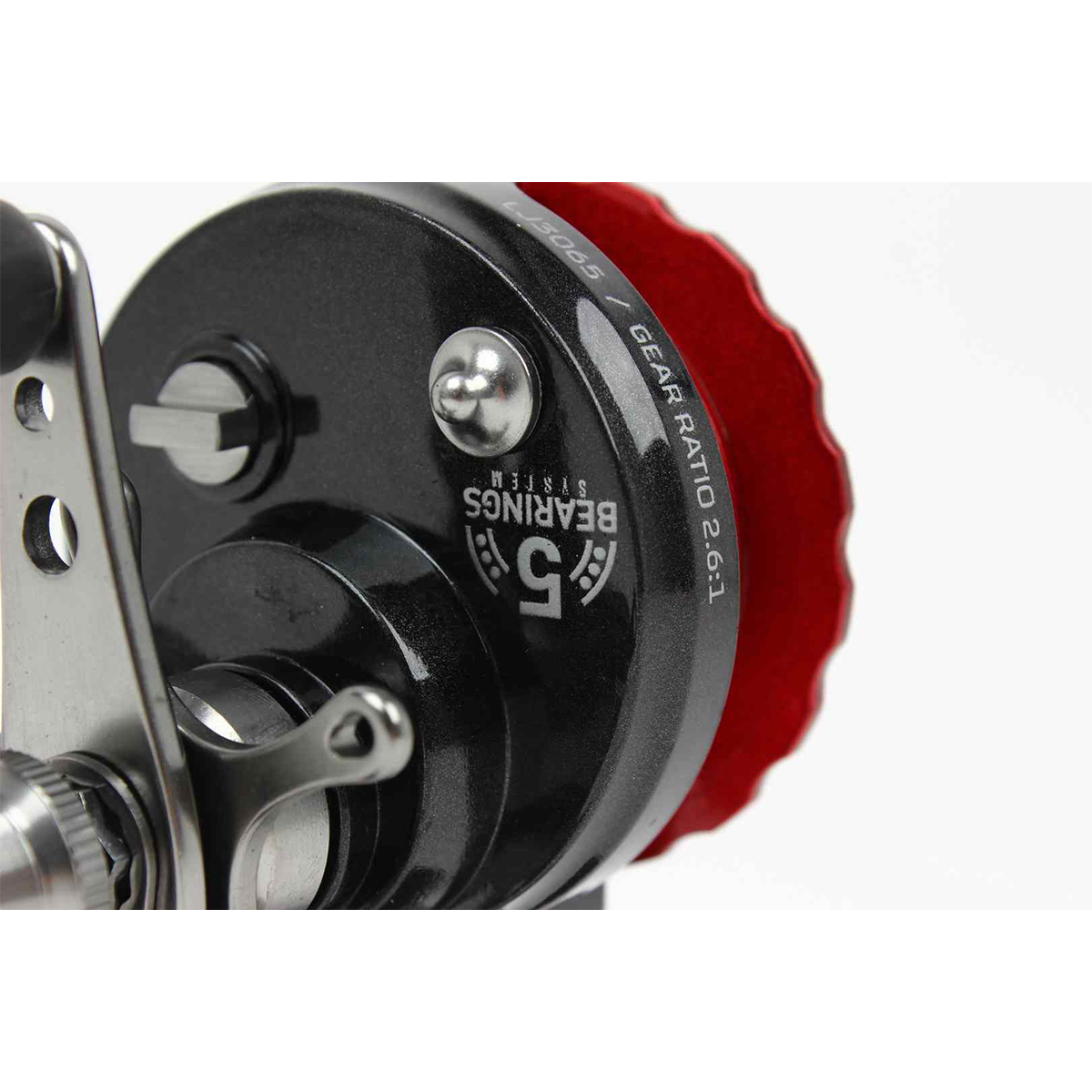 Катушка оснащена 4-мя шариковыми и одним роликовым подшипниками, фрикционным тормозом с регулировочной "звёздочкой" и включаемой механической "трещёткой".