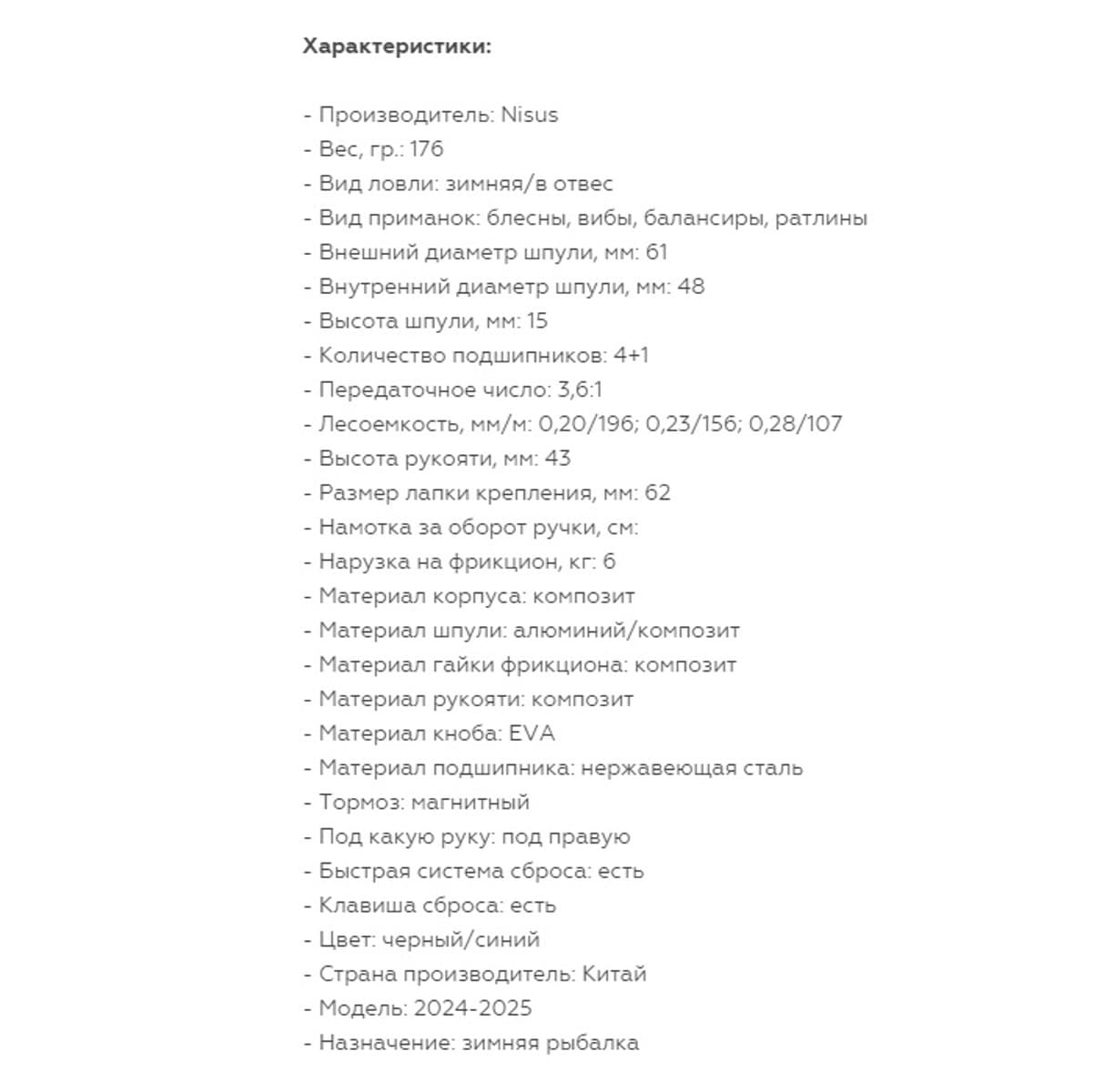 Катушка мультипликаторная зимняя Nisus Apex RH (N-DFS70-R)