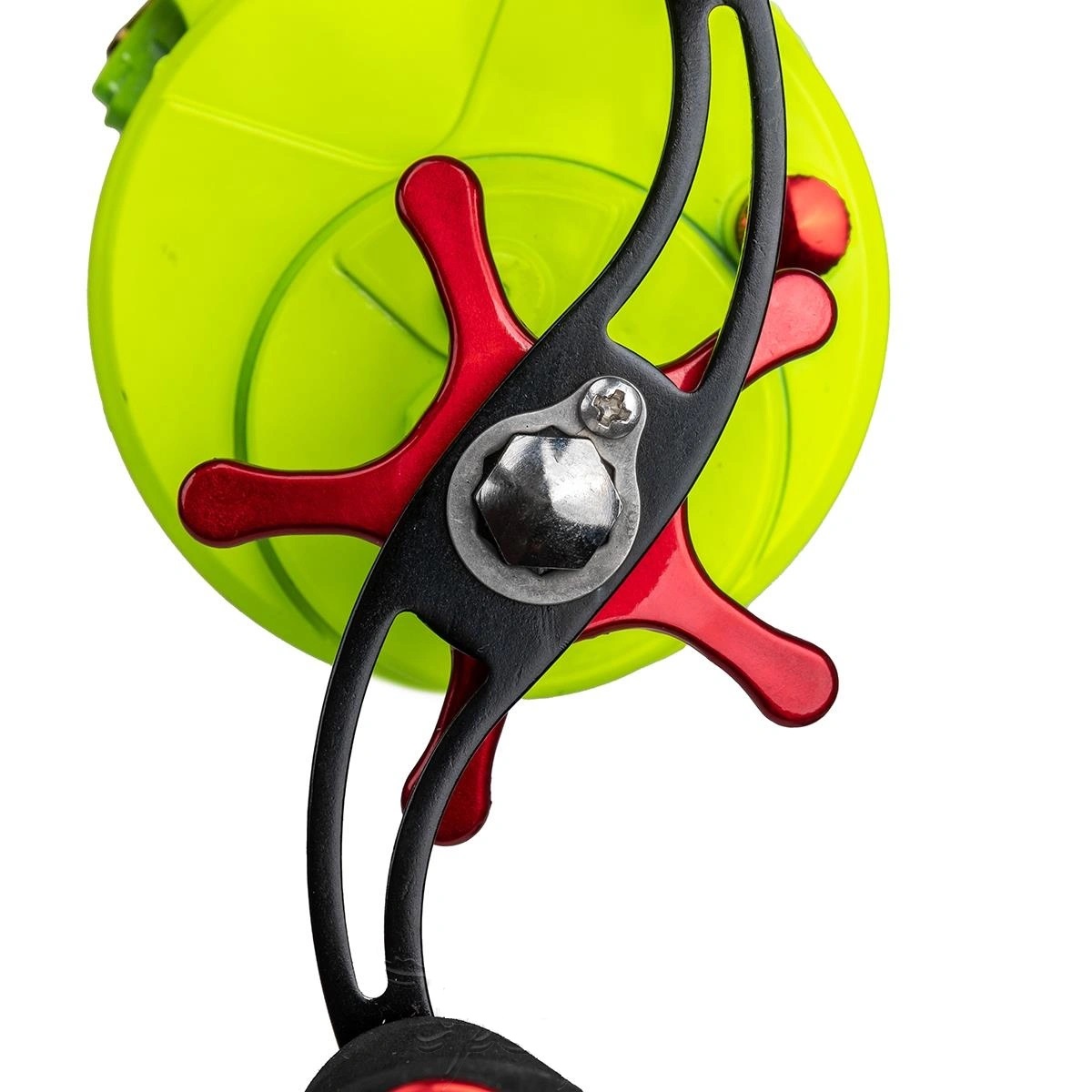 Настройка фрикциона выполняется традиционной для мультипликаторных катушек "звездочкой" на ручке катушки, а быстрое ослабление тормоза может быть выполнено непосредственно во время вываживания. Легкое и плавное вращение катушки обеспечивают 5 подшипников. Передаточное отношение 3,5:1 дает возможность быстро намотать леску на шпулю катушки, в отличие от обычных зимних катушек с передаточным отношением 1:1. Наличие возможности отдать немного лески по типу байтраннера позволяет быстро менять глубину при проверке всех горизонтов ловли.