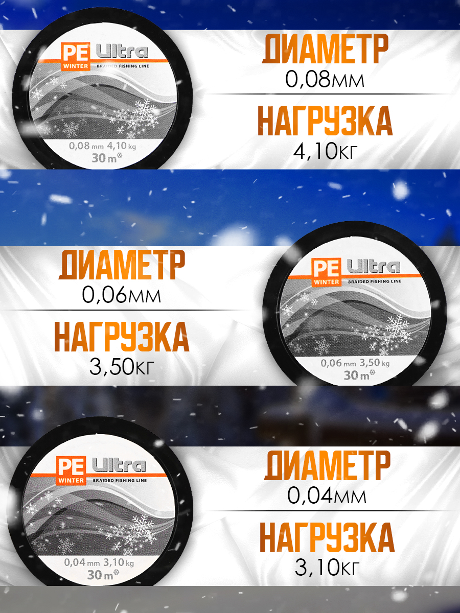 Набор плетеных шнуров PE Ultra Winter 0.04;0.06;0.08мм 30m