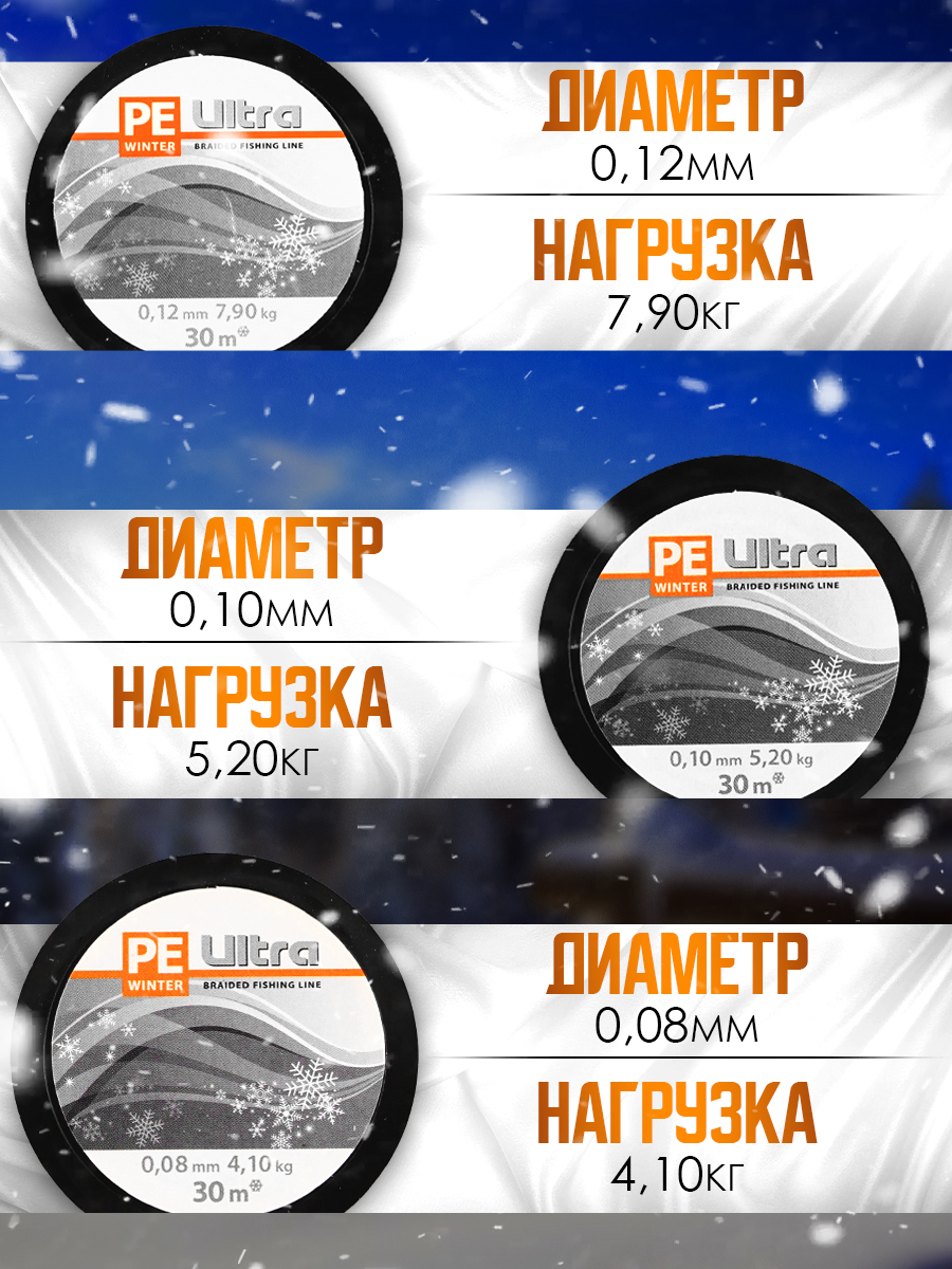 Набор плетеных шнуров PE Ultra Winter 0.08;0.10;0.12мм 30m