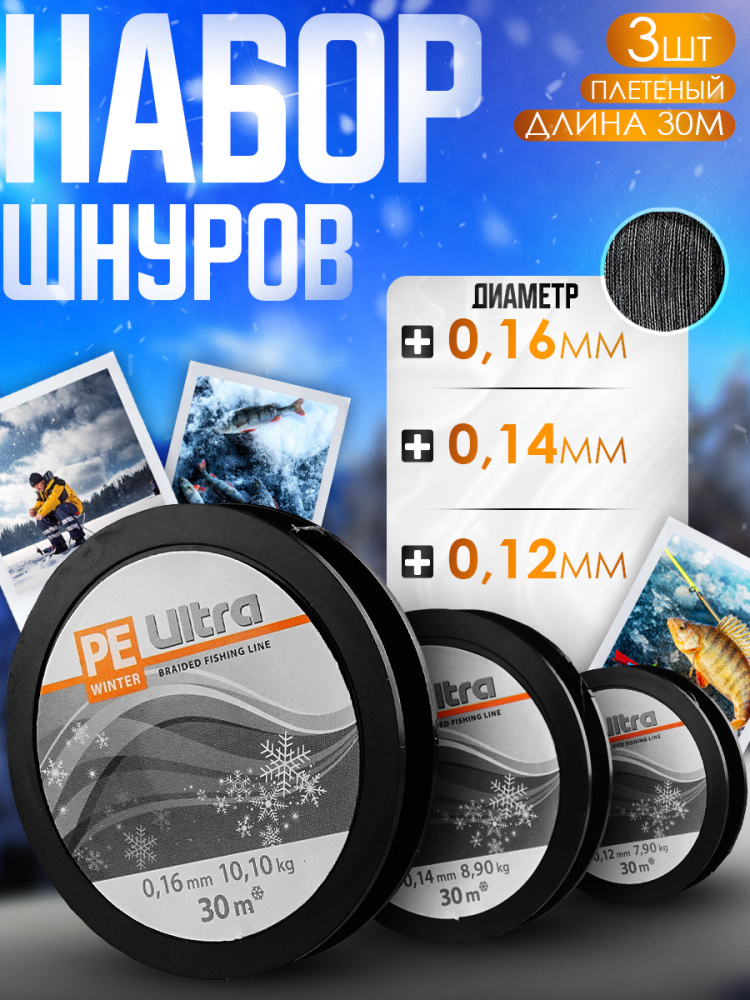 Набор плетеных шнуров PE Ultra Winter 0.12;0.14;0.16мм 30m
