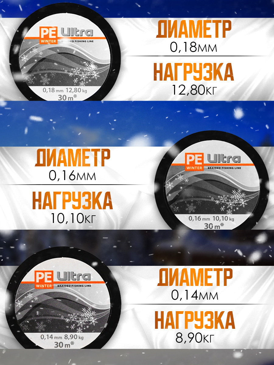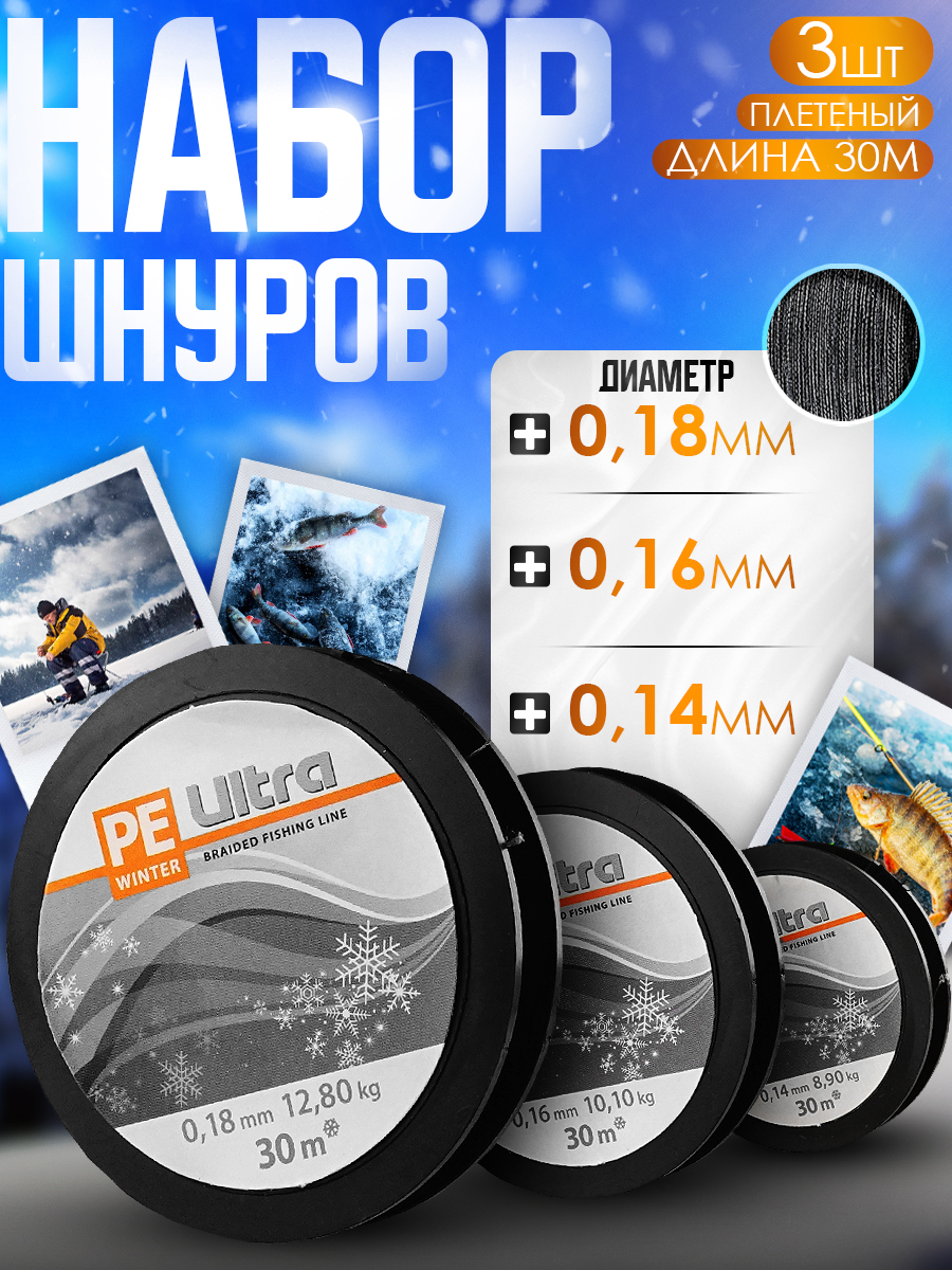 Набор плетеных шнуров PE Ultra Winter 0.14;0.16;0.18мм 30m