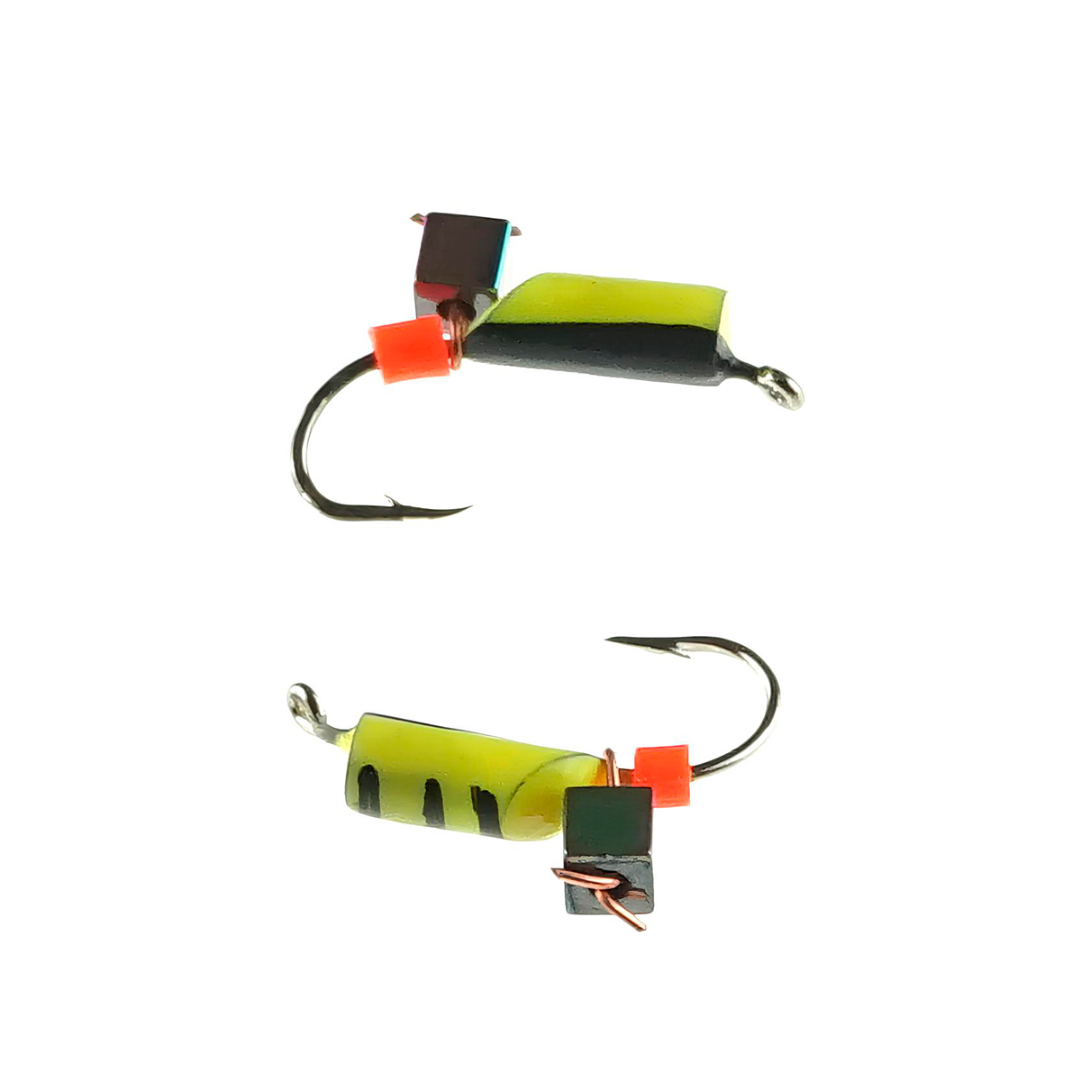 Мормышки вольфрамовые Ивановские Столбик с кубом на петле d-2,5мм 0,58гр куб хамелеон, желтые, черные (5шт)