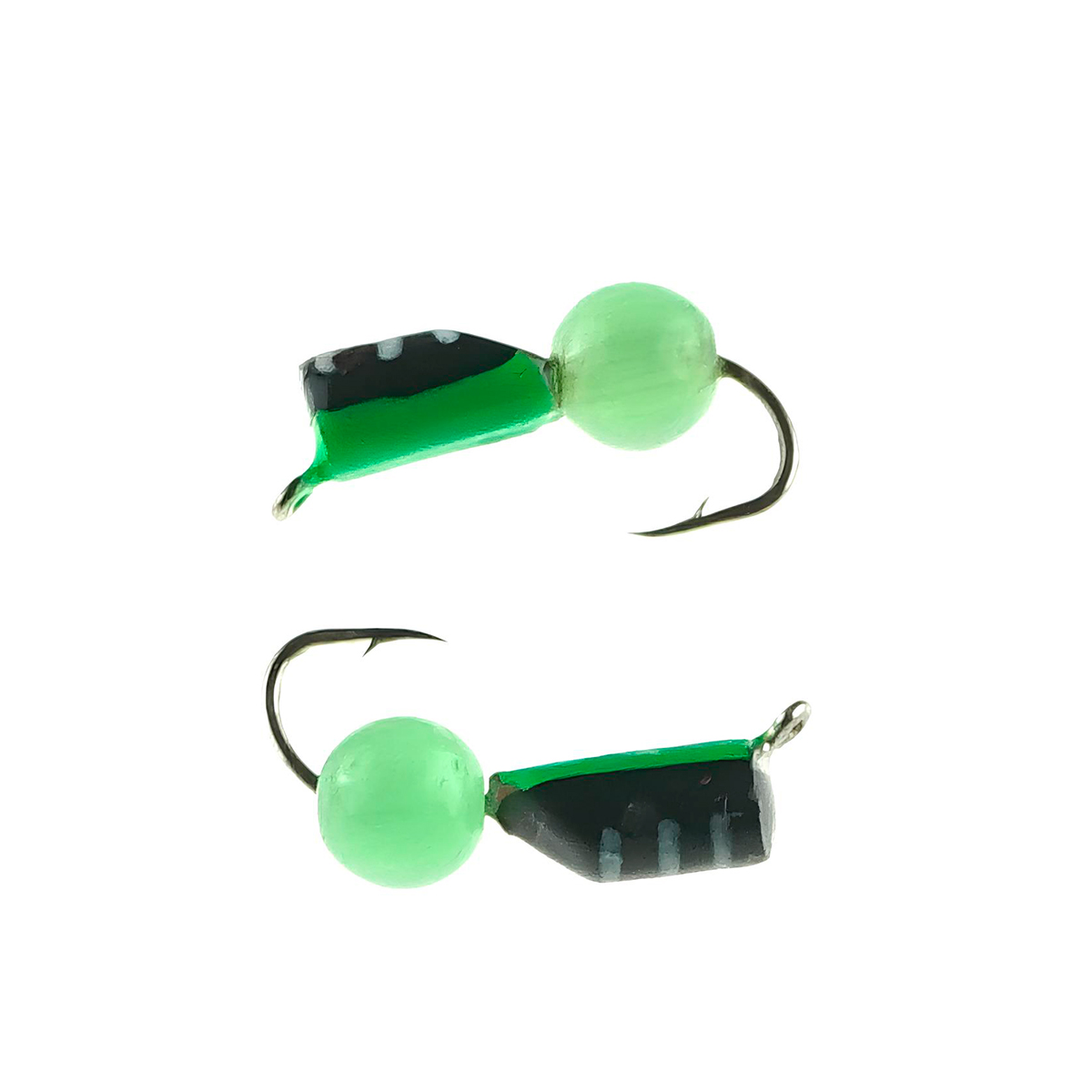 Мормышки вольфрамовые Ивановские Столбик с камнем кошачий глаз на крючке d-3мм 0,86гр черные, зеленые (5шт)