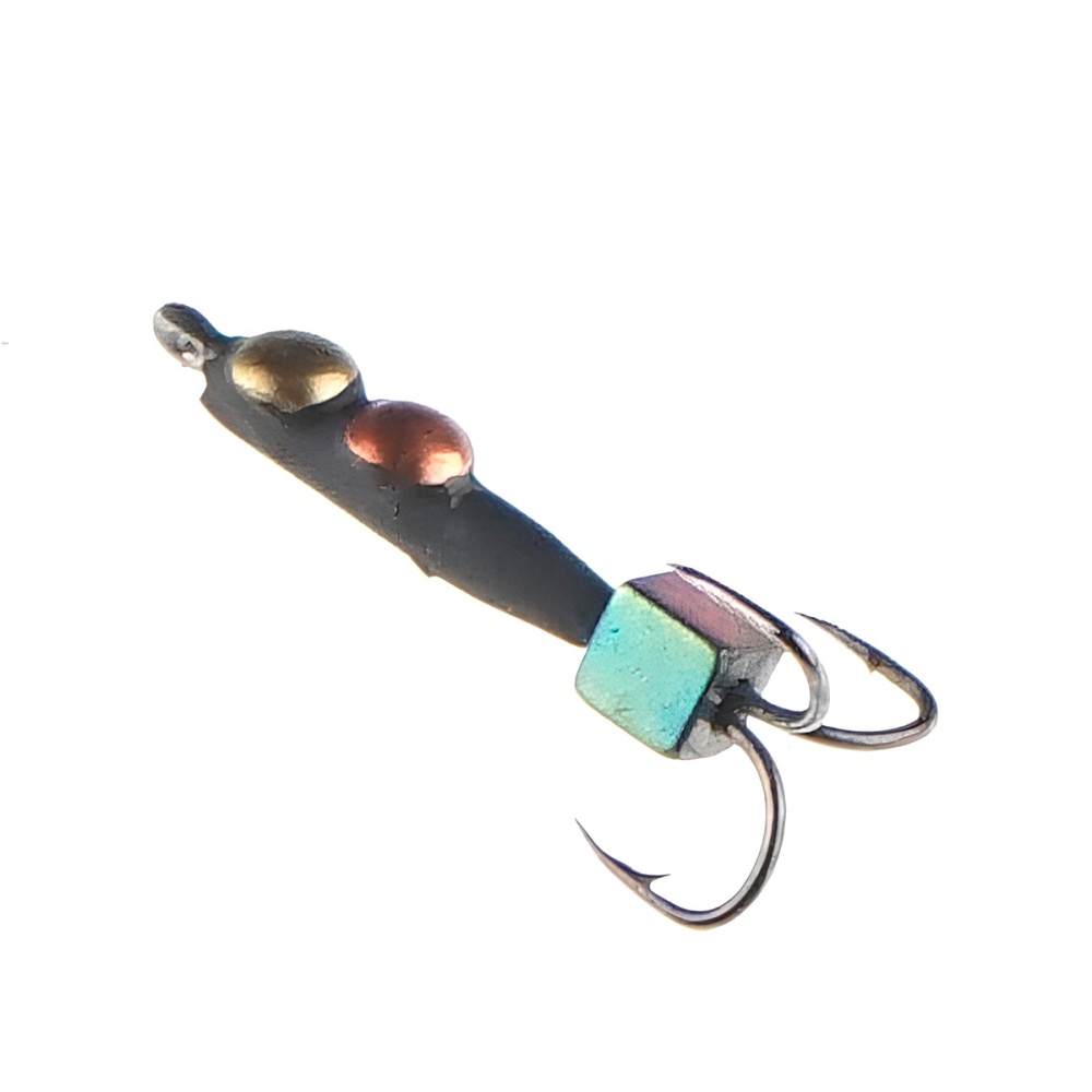 Мормышка вольфрамовая Ивановская 1412R Черт с 2 коронками и квадратом d-1,5мм 0,2гр, 8мм куб хамеле