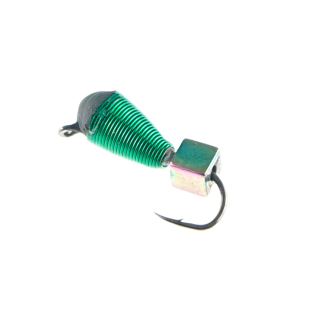 Мормышка вольфрамовая Ивановская 625C Капля витая зеленая с квадратом d-4мм 1,2гр, 8мм куб хамелеон