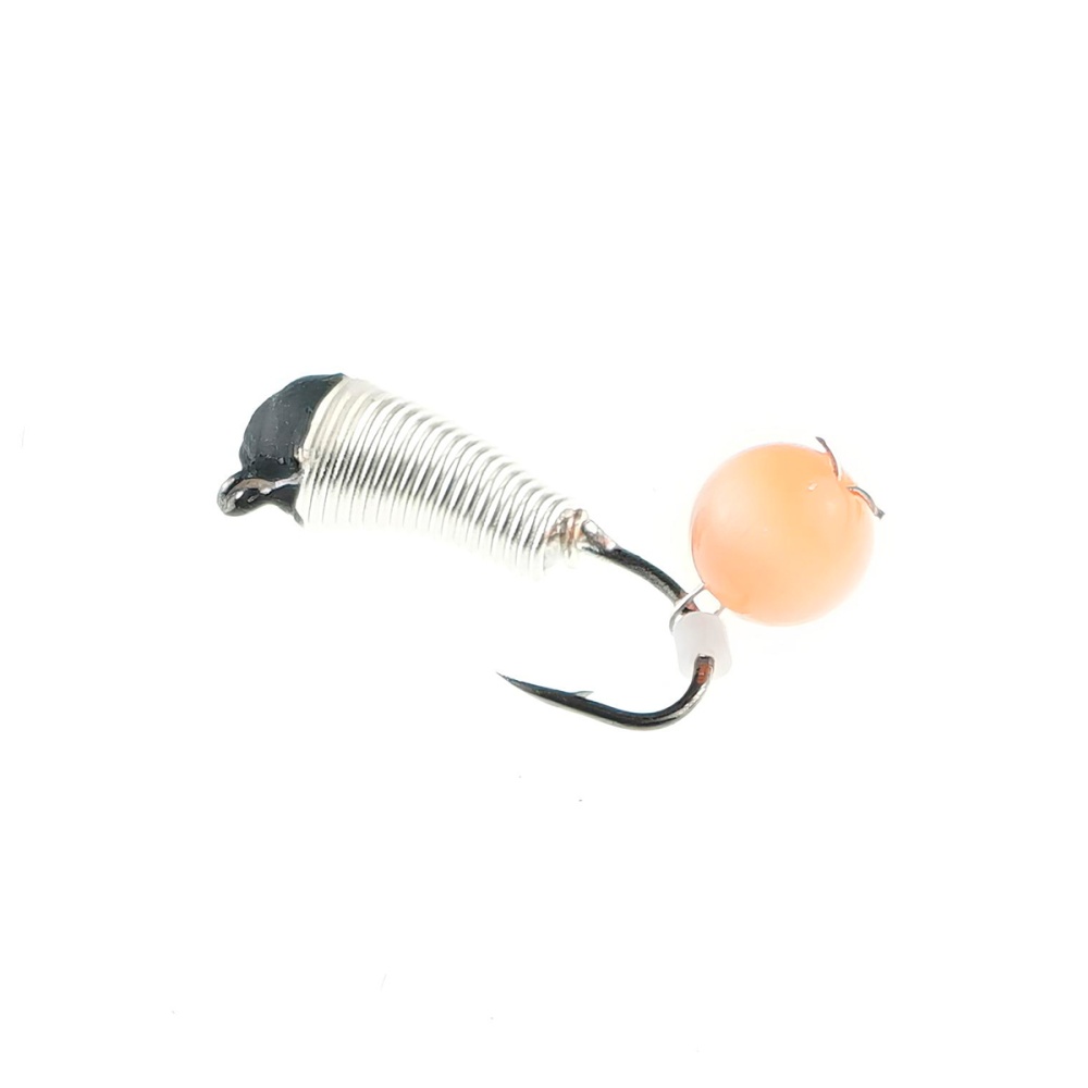 Мормышка вольфрамовая Ивановская 864D1 Банан витой белый с оранжевым кошачьим глазом d-3мм 0,67гр