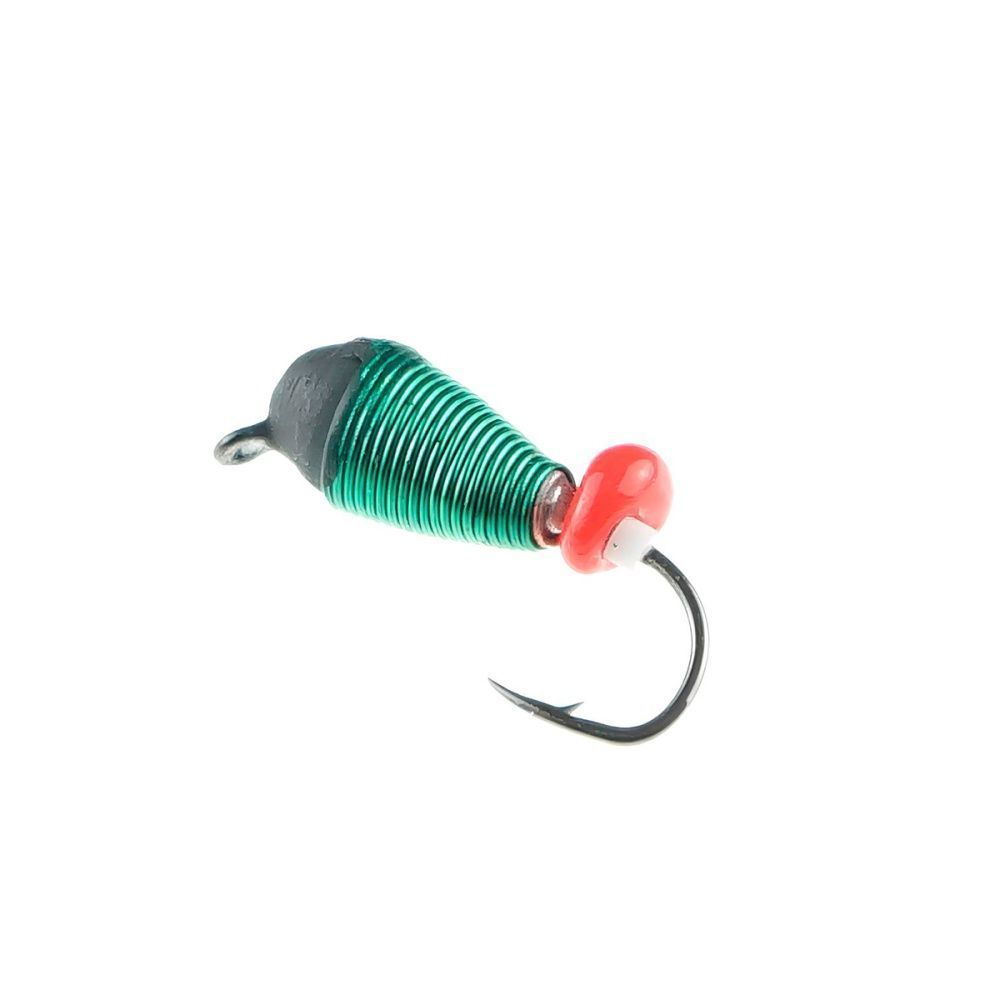 Мормышка вольфрамовая Ивановская 635C1 Капля витая зеленая с красным эксцентриком d-4мм 1,2гр, 8м