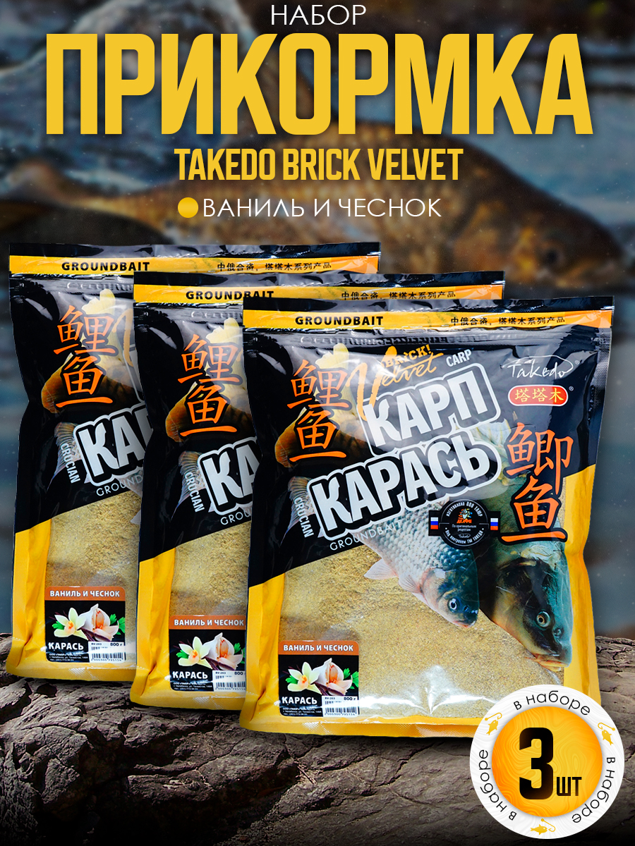 Набор прикормки Takedo Brick Velvet 800гр, Карась, Ваниль+Чеснок, 3шт