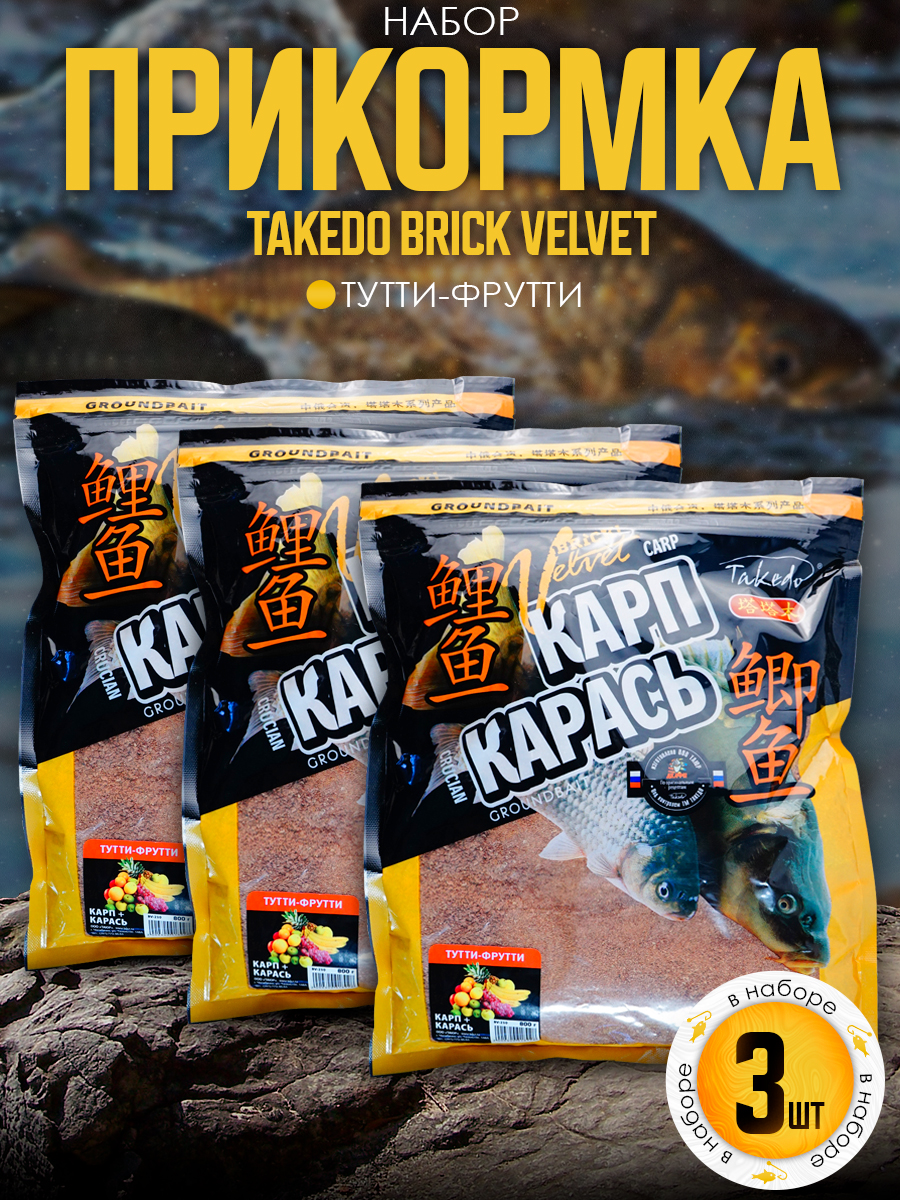 Набор прикормки Takedo Brick Velvet 800гр, Карп+Карась, Тутти-Фрутти, 3шт