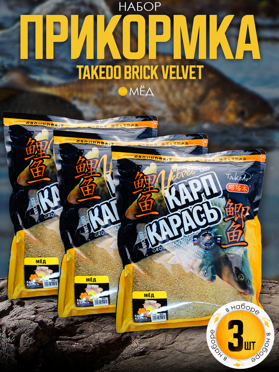 Набор прикормки Takedo Brick Velvet 800гр, Карп+Карась, Мед, 3шт