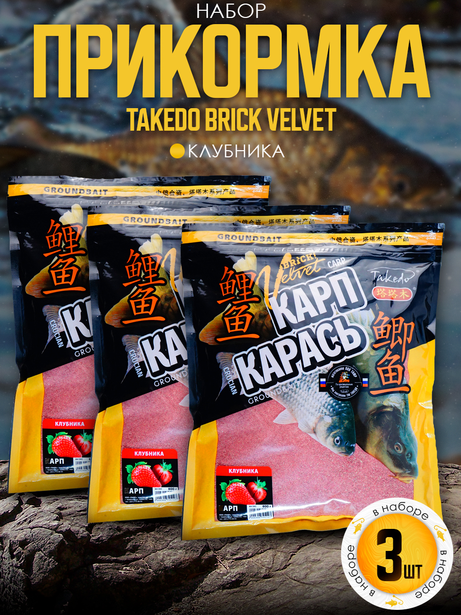Набор прикормки Takedo Brick Velvet 800гр, Карп, Клубника, 3шт