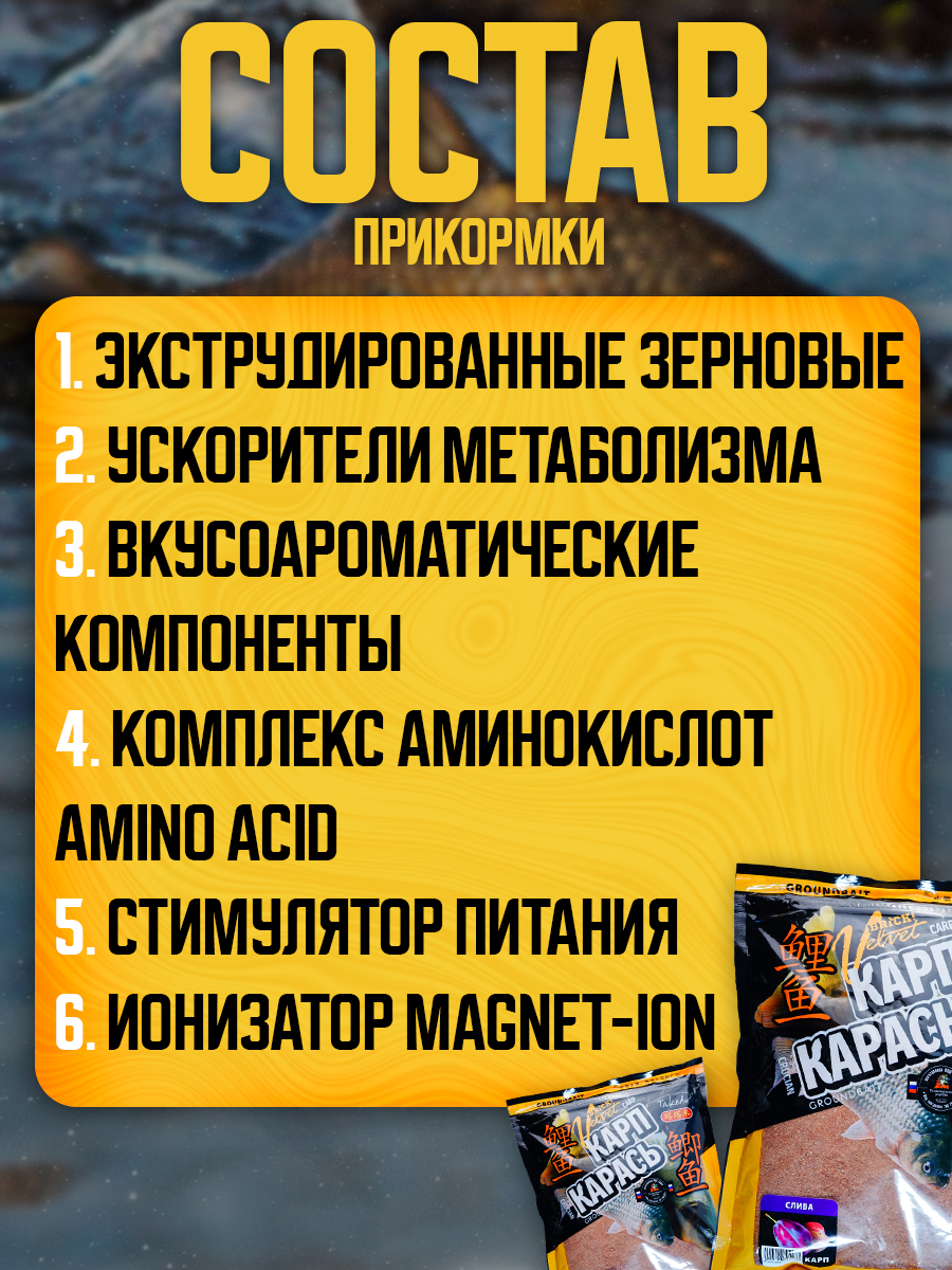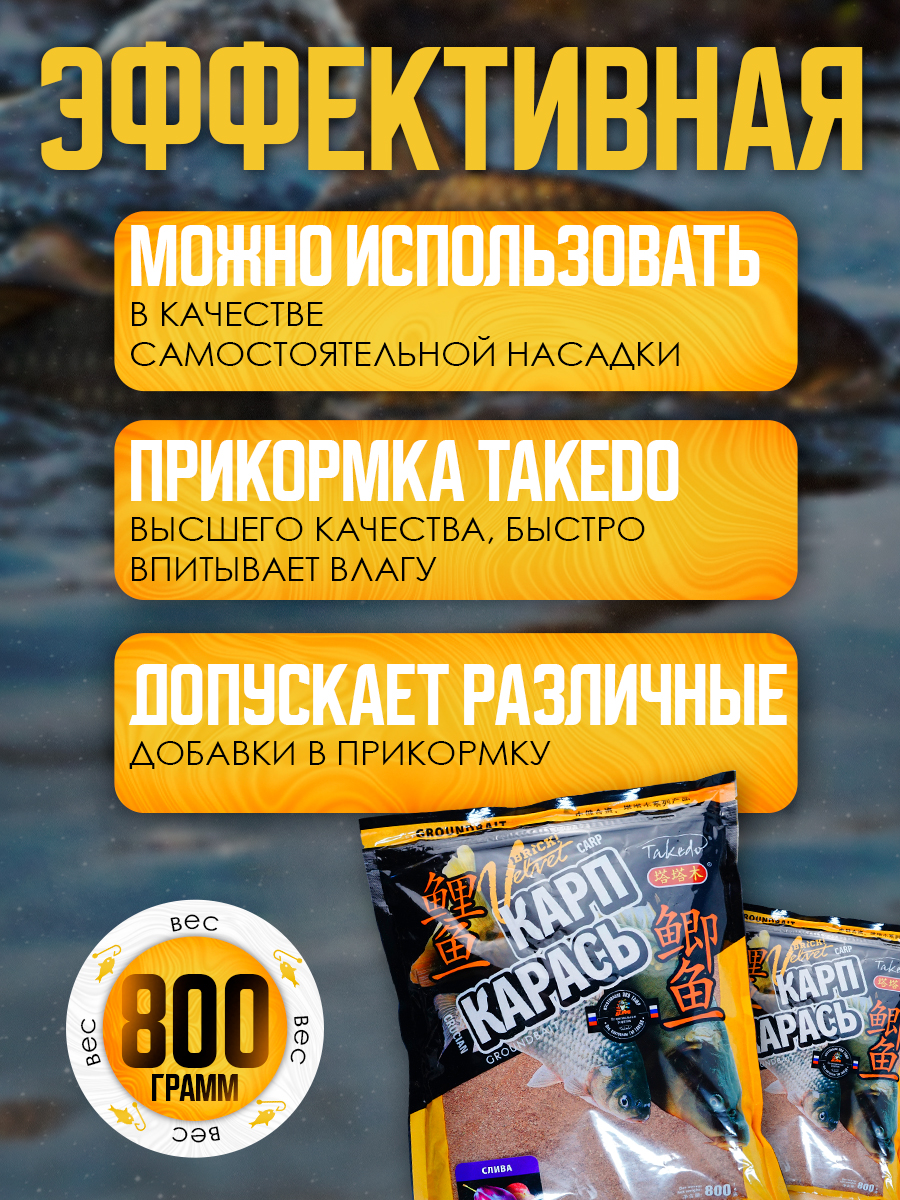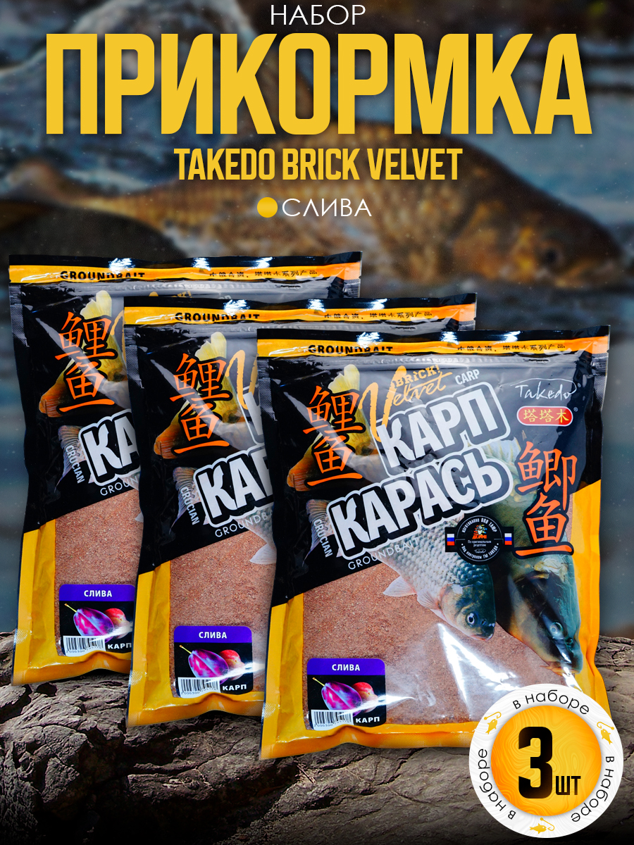 Набор прикормки Takedo Brick Velvet 800гр, Карп, слива, 3шт