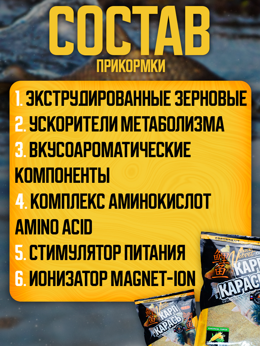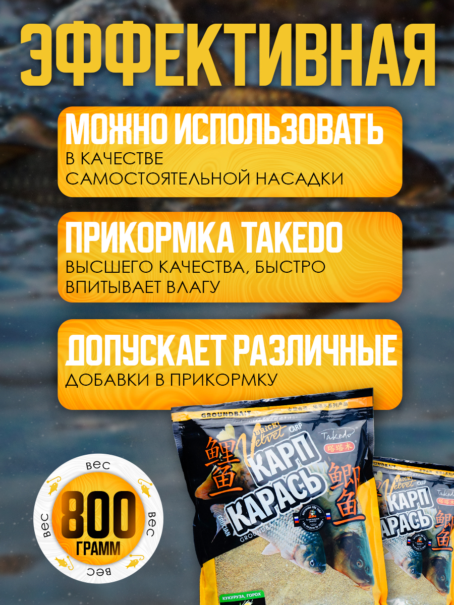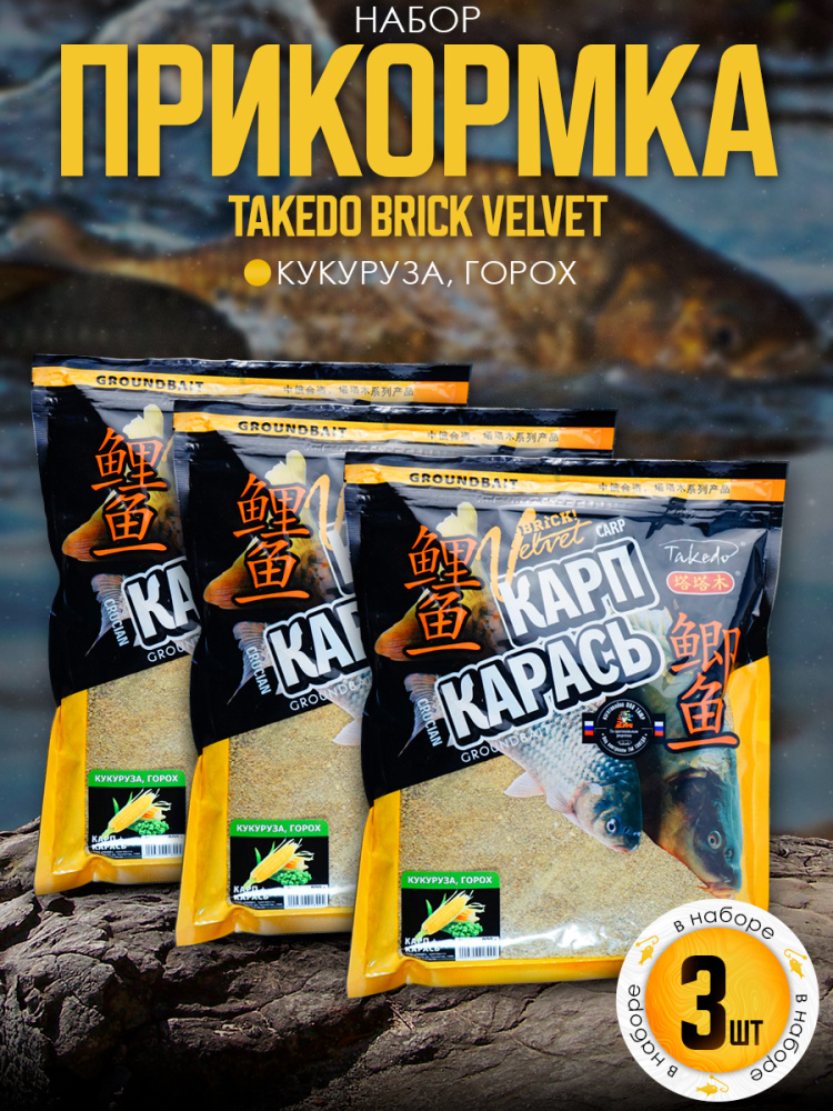 Набор прикормки Takedo Brick Velvet 800гр, Карп,Карась, Кукуруза,Горох, 3шт