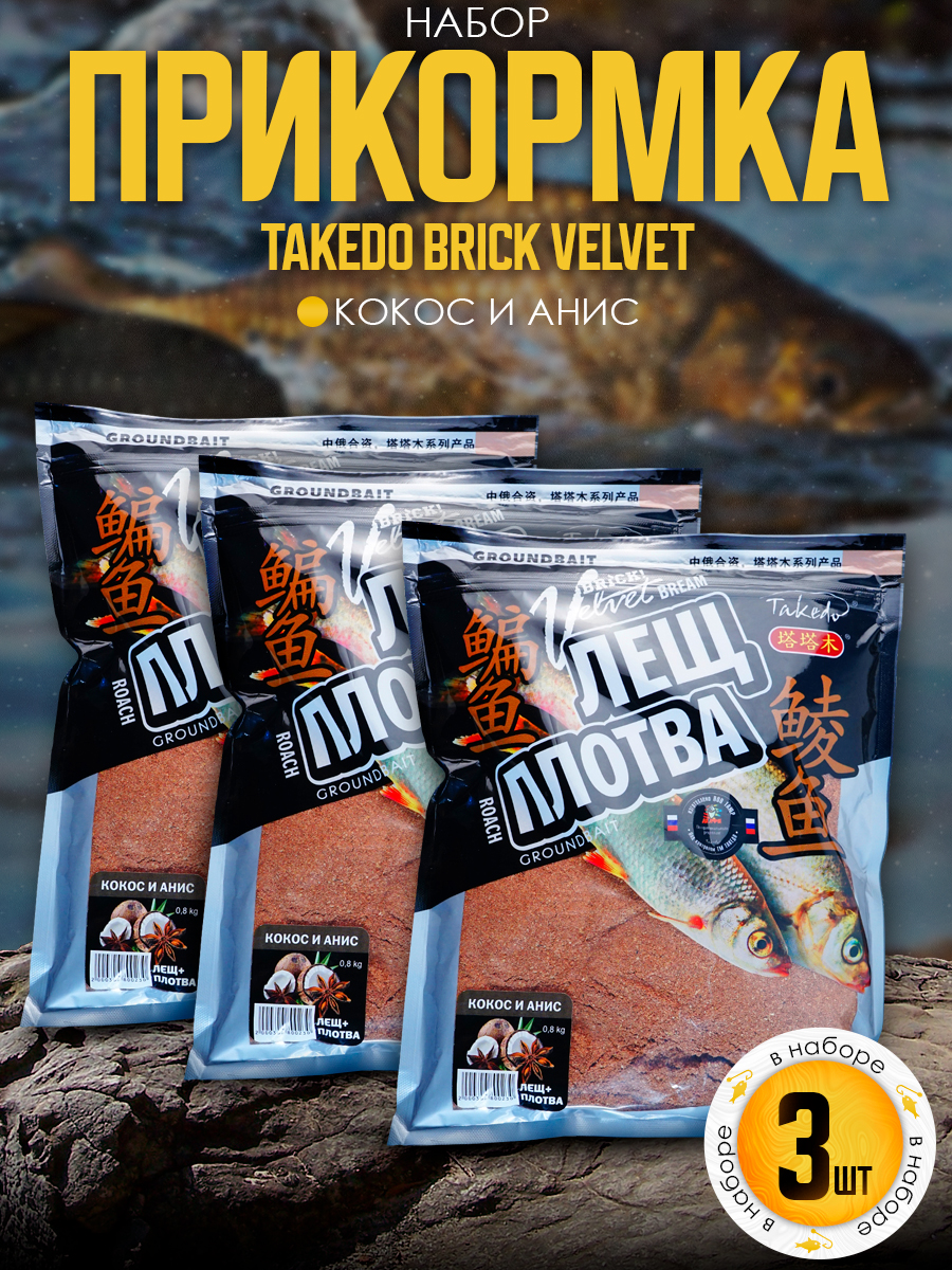 Набор прикормки Takedo Brick Velvet 800гр, лещ+Плотва, кокос+Анис, 3шт