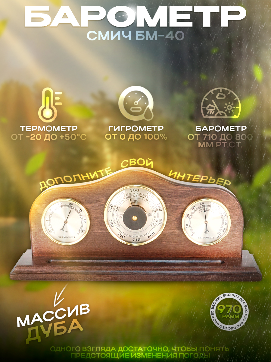 Метеостанция БМ-40 - это надежный и точный прибор, который поможет вам контролировать погодные условия внутри вашего дома. Она идеально подойдет для использования в гостиной, кабинете или спальне. Метеостанцию можно легко разместить в любом удобном для вас месте.