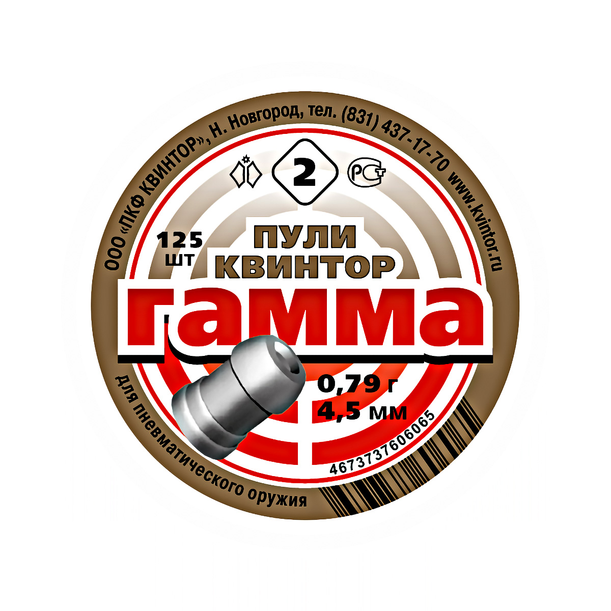 Пули для пневматики Гамма №2 4,5мм 0,79гр (125шт)