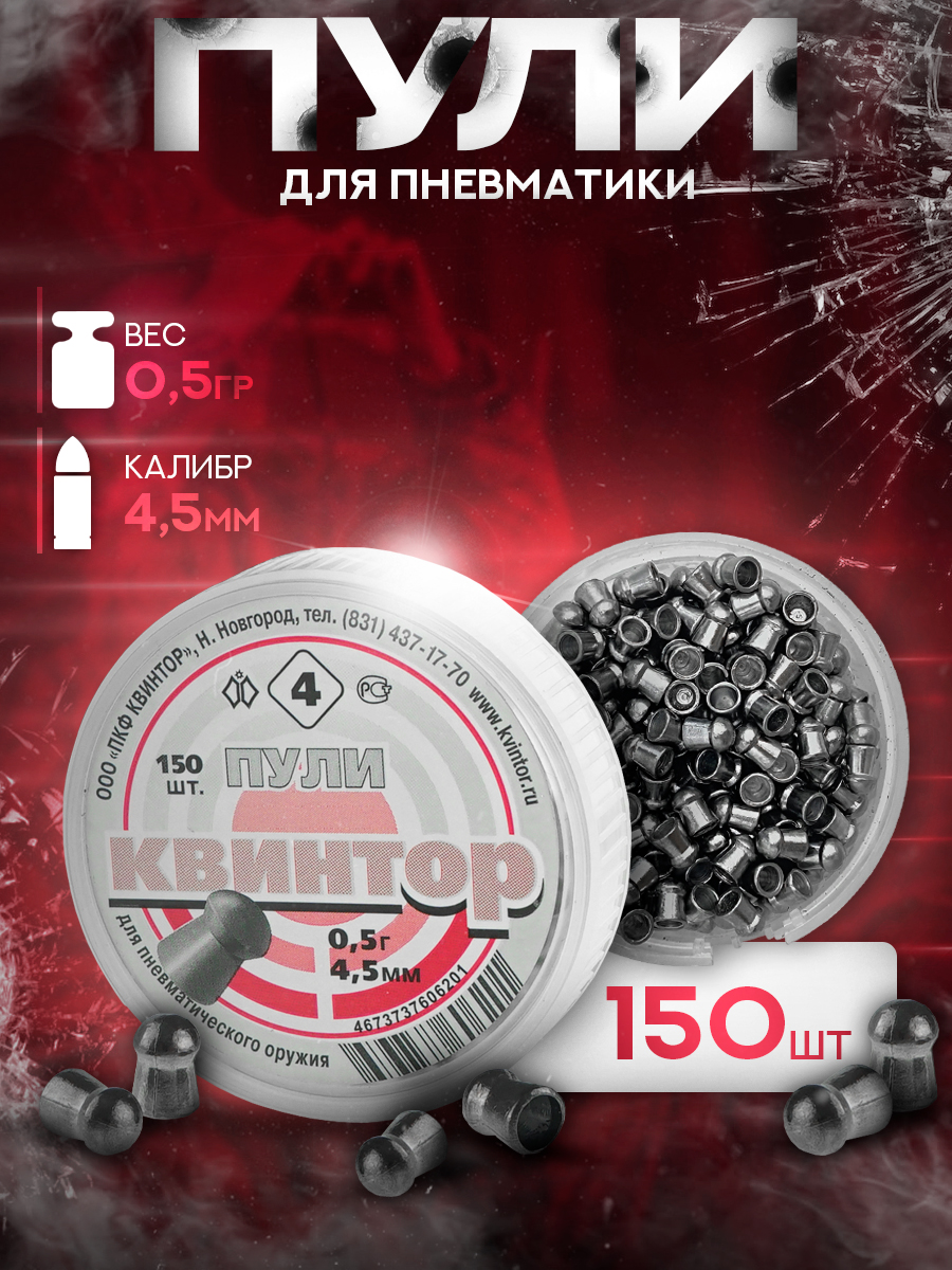 Пули для пневматики Квинтор №4 4,5мм 0,5гр круглая головка (150шт)