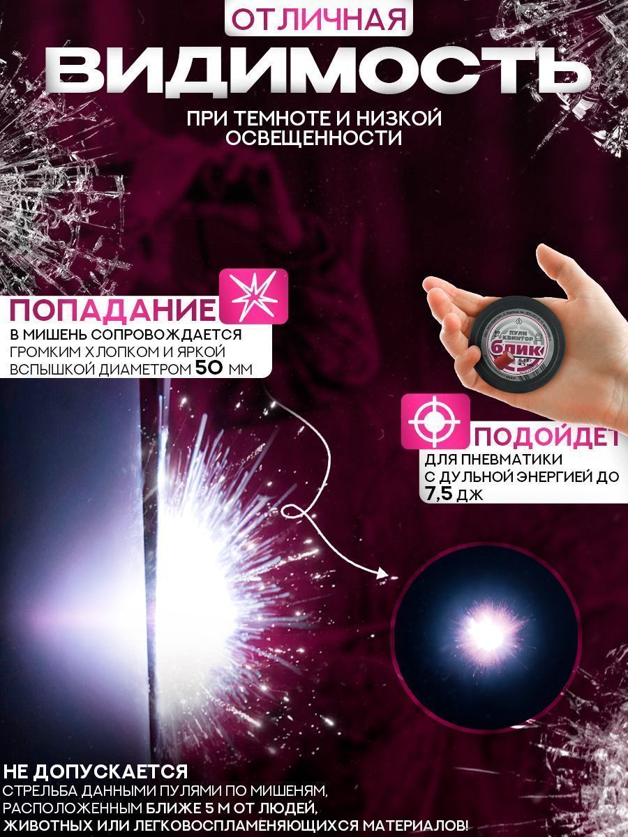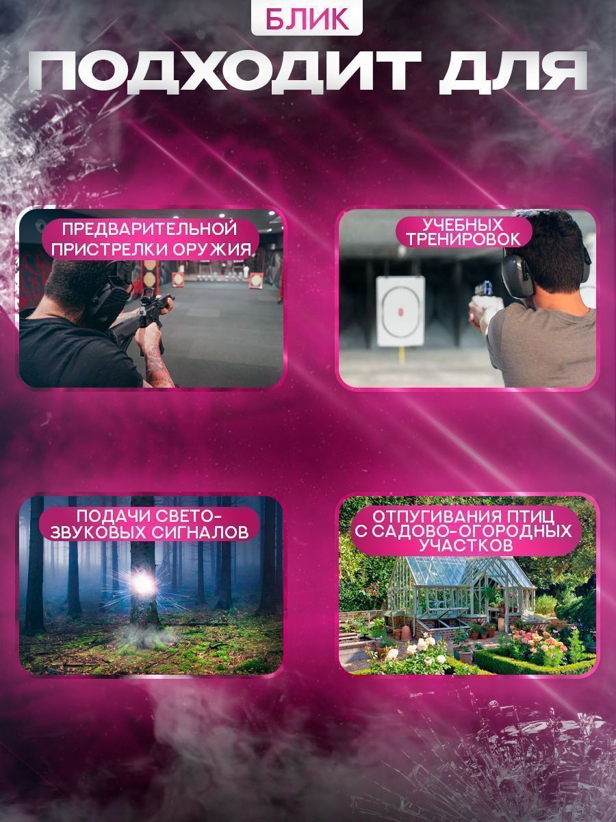 Пули «Блик» могут использоваться для предварительной пристрелки оружия, подачи свето-звукового сигнала, отпугивания птиц с садово-огородных участков.