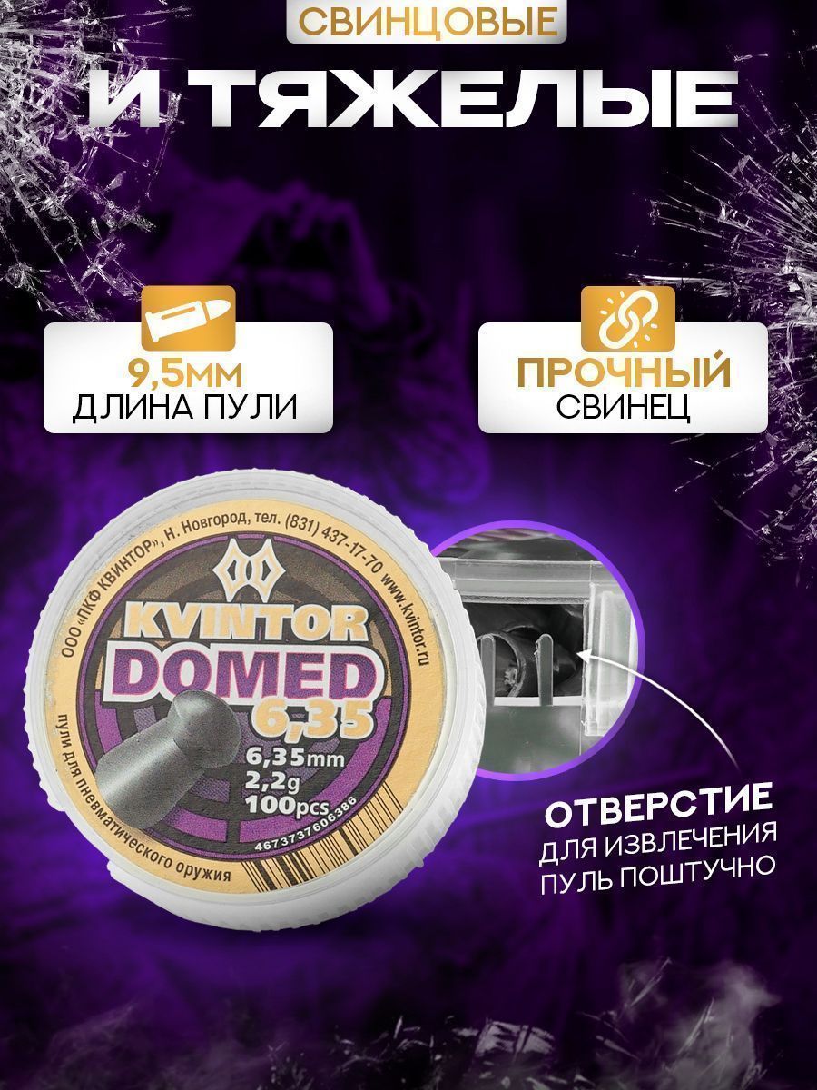 Пули для пневматики Kvintor Domed (100шт) 6,35мм 2,2гр