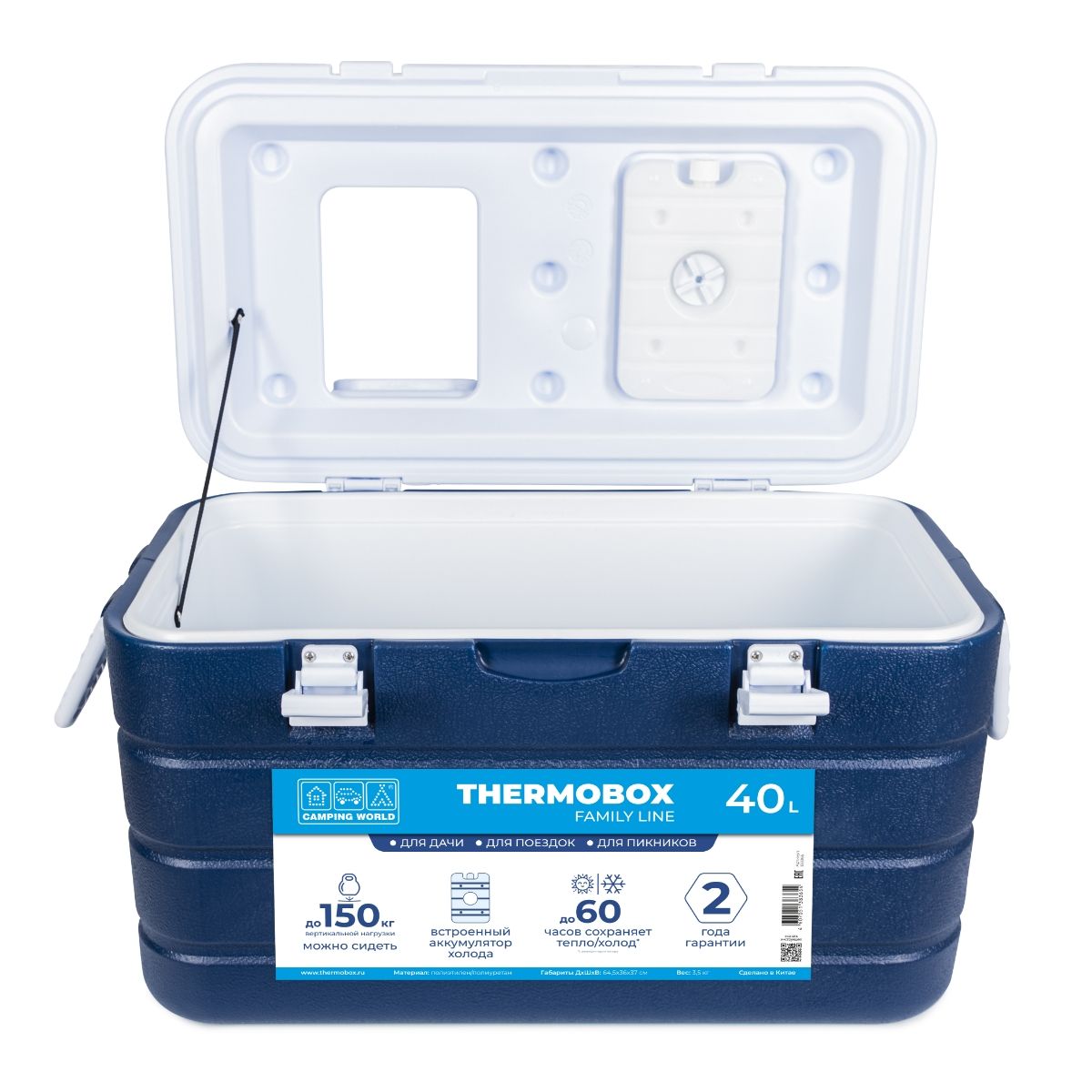 Термоконтейнер отличает прочный ударопрочный корпус, надежная и жесткая конструкция. Он выдерживает до 150 кг вертикальной нагрузки. На крышке можно сидеть взрослому человеку, сверху можно ставить другие термобоксы.