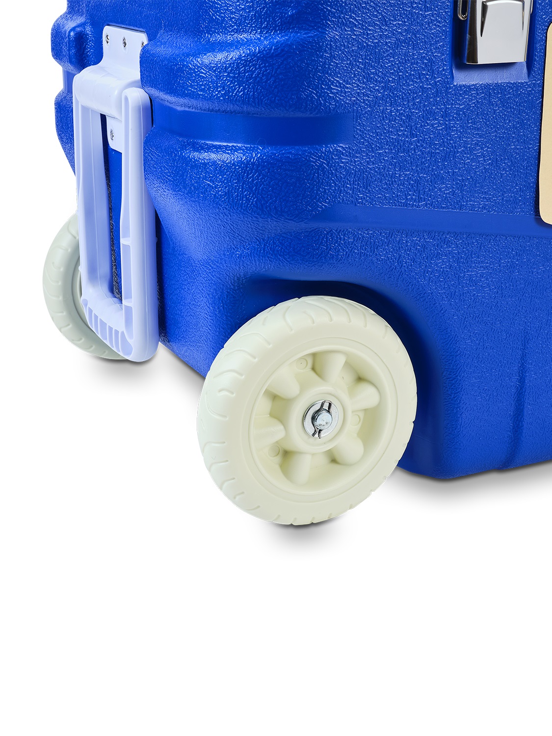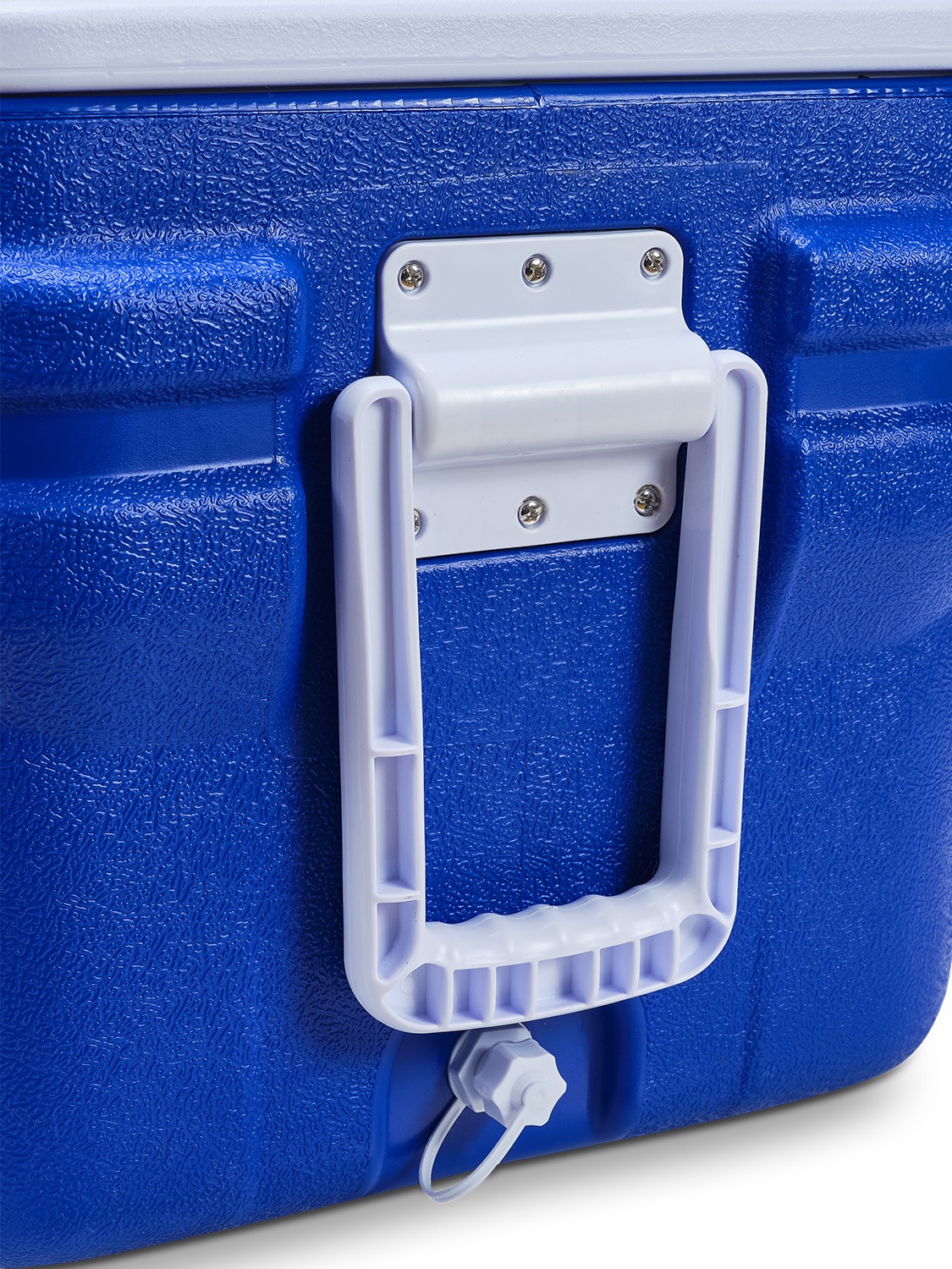 У термоконтейнера на 40 л в крышке есть окошко для легкого доступа – взять или убрать продукты можно в два счета, не открывая весь контейнер. Сам контейнер оборудован прочными ручками с двух сторон, крепкими замками с защитой от случайного открывания и фиксирующим ремнем, который удерживает крышку в открытом состоянии. Встроенный слив решит проблему избытка конденсата.