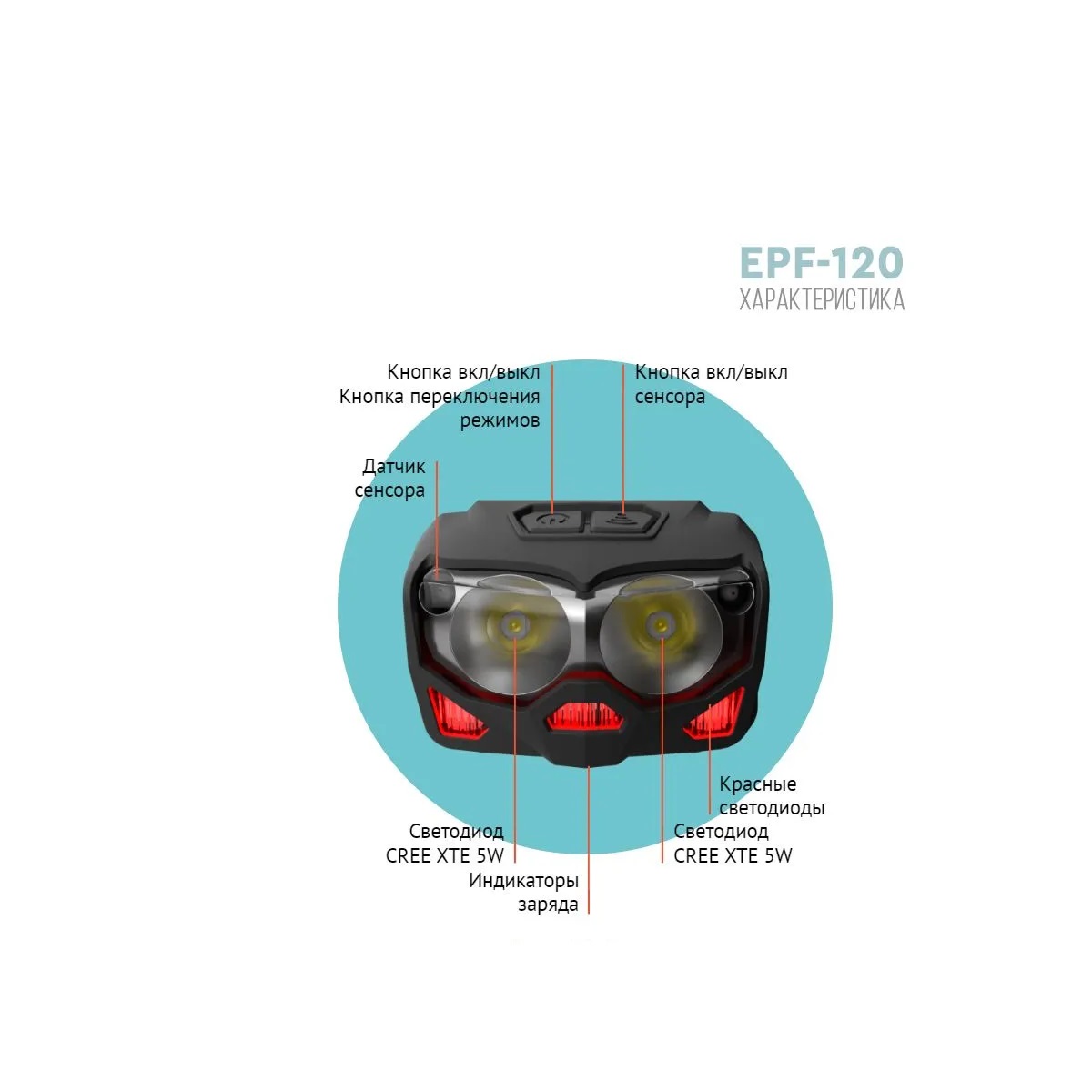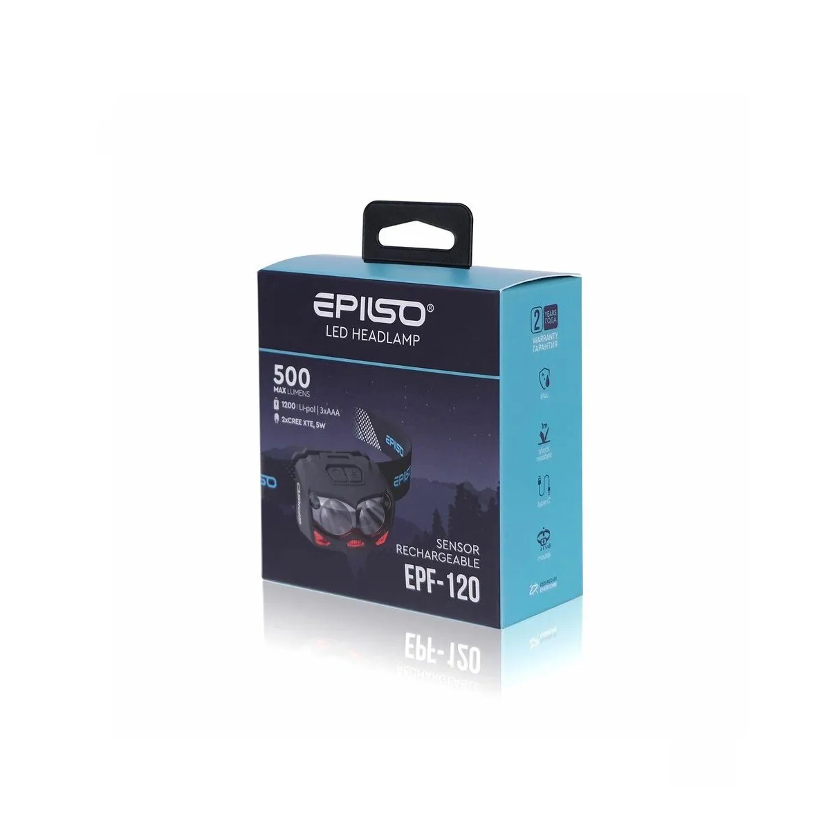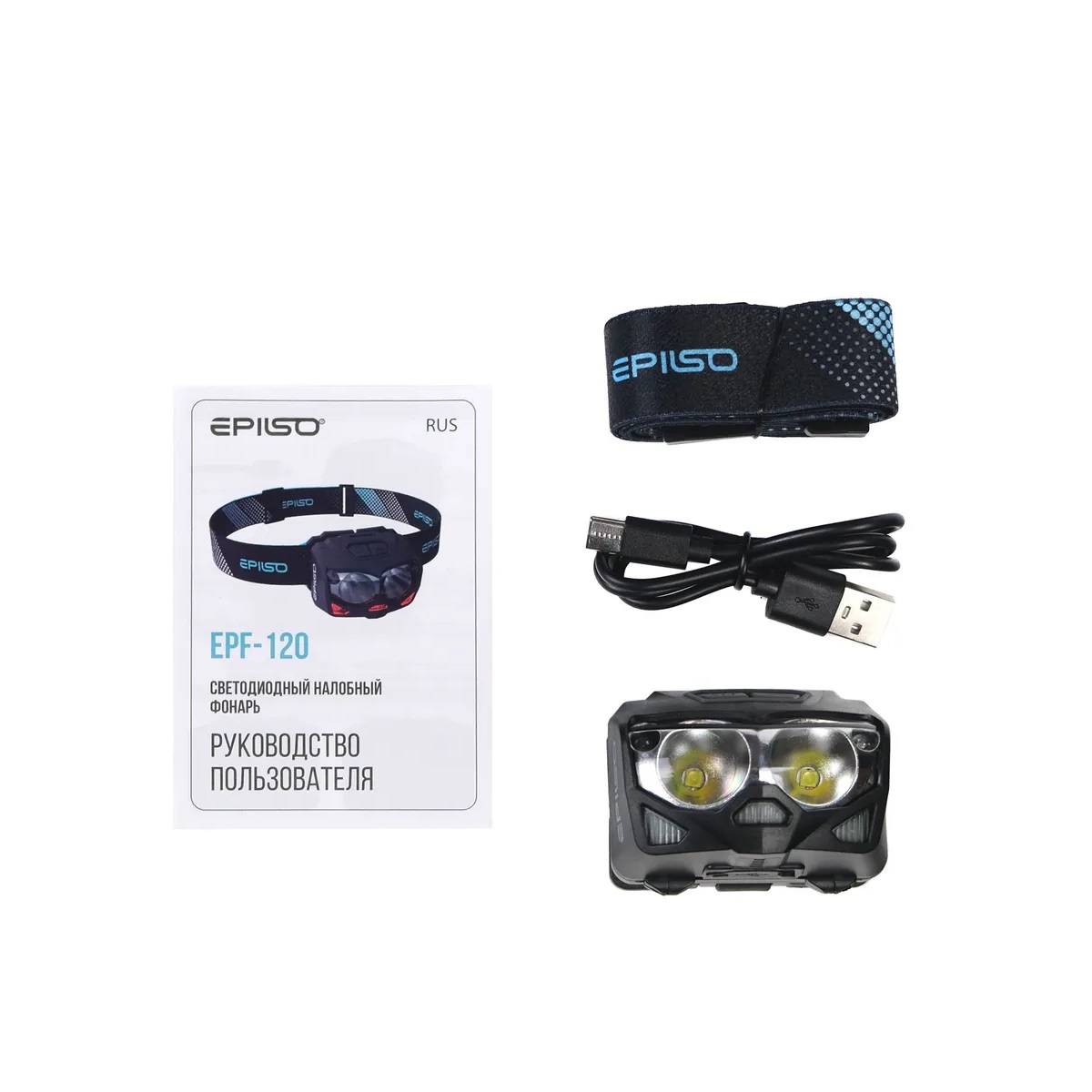 Фонарь налобный Epilso EPF-120 (CREE XTE 5W x2, 1x1200mAh, 5В (USB), пластик,+работа от ААА)