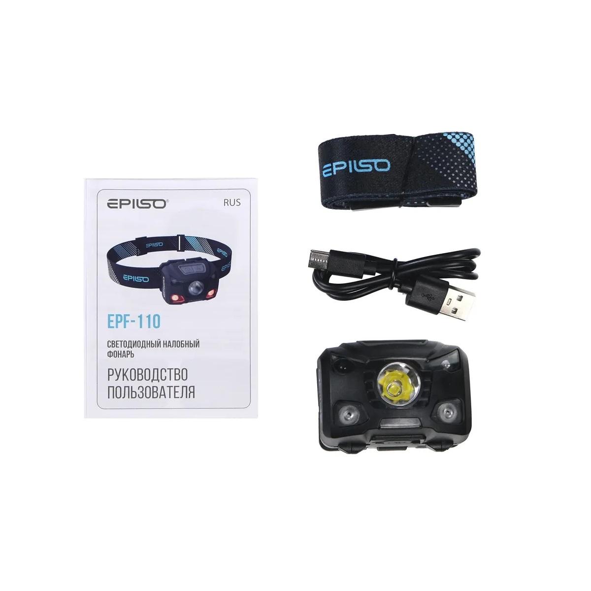 Фонарь налобный Epilso EPF-110 (CREE XTE 5W, 1x1200mAh, 5В (USB), пластик,+работа от ААА)