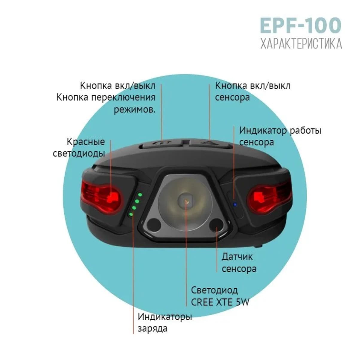 Фонарь налобный Epilso EPF-100 (CREE XTE 5W, 1x850mAh, 5В (USB), пластик)