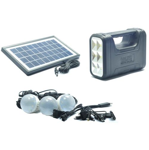 Модель создана для дачи, походов и аварийных ситуаций: солнечная панель заряжает встроенный аккумулятор, а три светодиодные лампы с индивидуальными выключателями дают направленный белый свет. В отличие от упрощённых наборов, здесь предусмотрены USB-выход для гаджетов, FM‑радио/MP3 (USB/SD) и наглядный индикатор заряда из трёх светодиодов — удобно контролировать остаток энергии и расход.