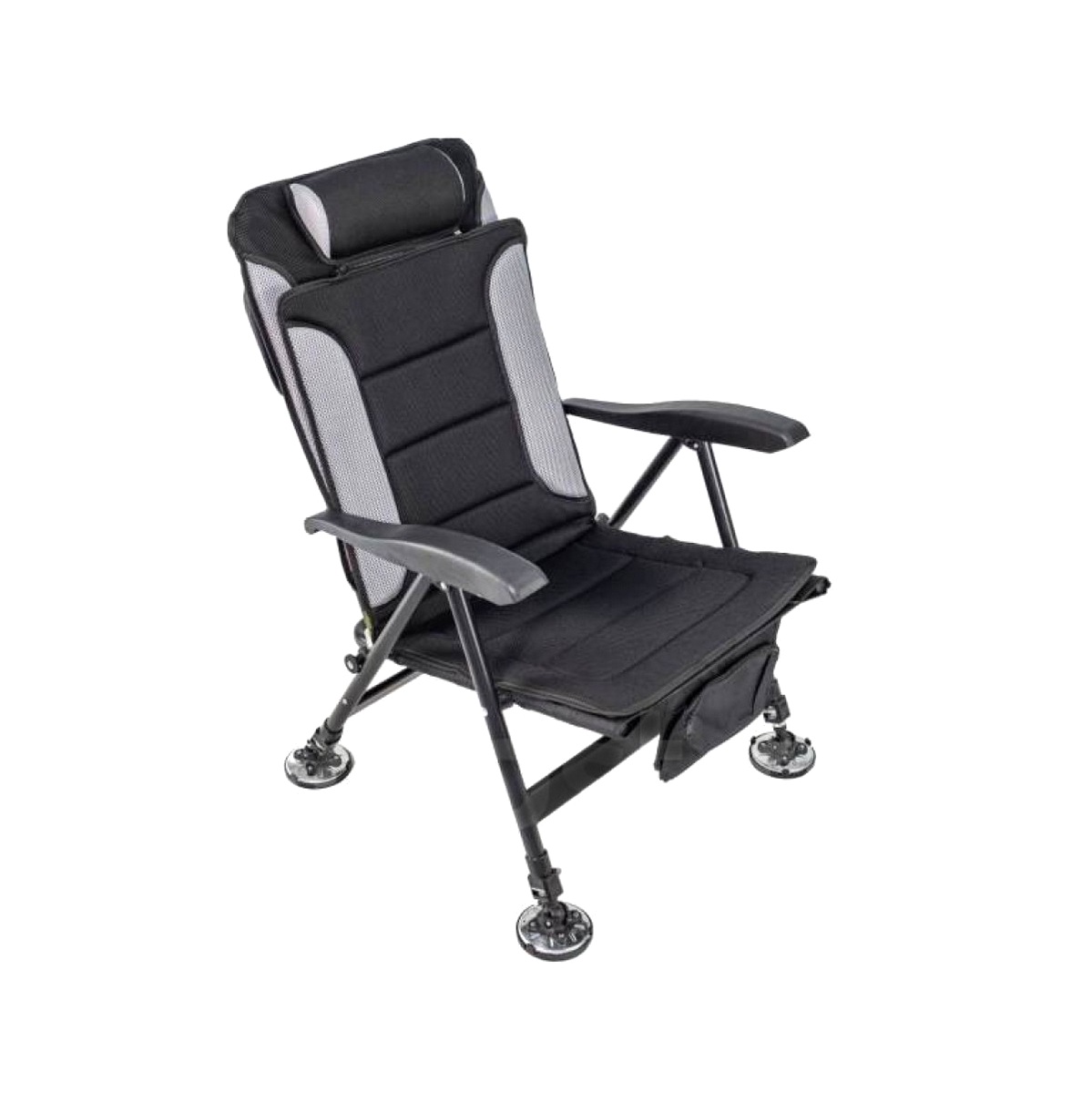 Благодаря четырем телескопическим ножкам кресло карповое складное можно легко установить на неровной и наклонной поверхности. Ножки кресла оснащены увеличенными шарнирными пятками, которые не дают ему проваливаться в мягкий грунт, и обеспечивают дополнительную устойчивость.