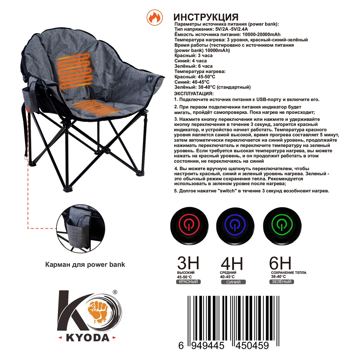 Кресло кемпинговое Kyoda складное 90х75х43/93см, полукруглое, с подогревом